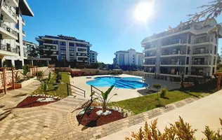 A linear four-room apartment with a separate kitchen and a glazed cormorant in a low-rise well-maintained complex in the European district of Alany