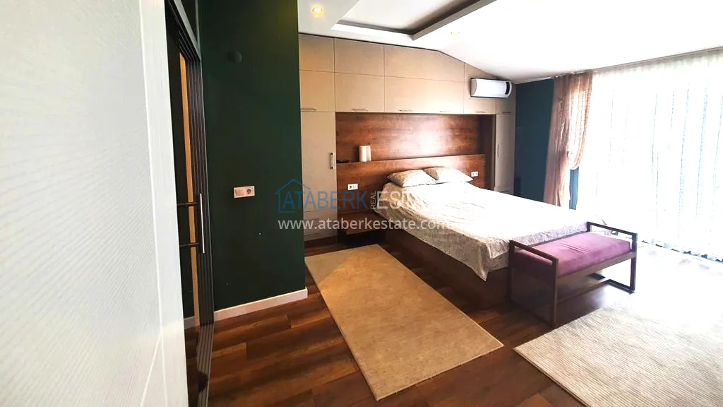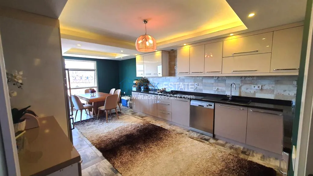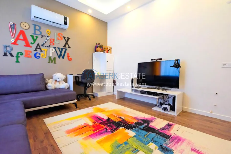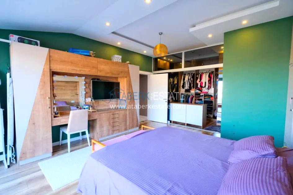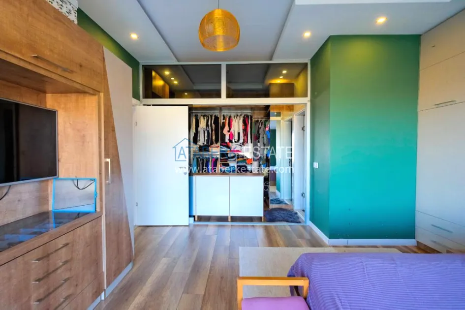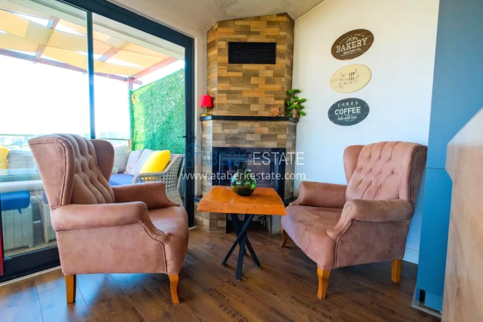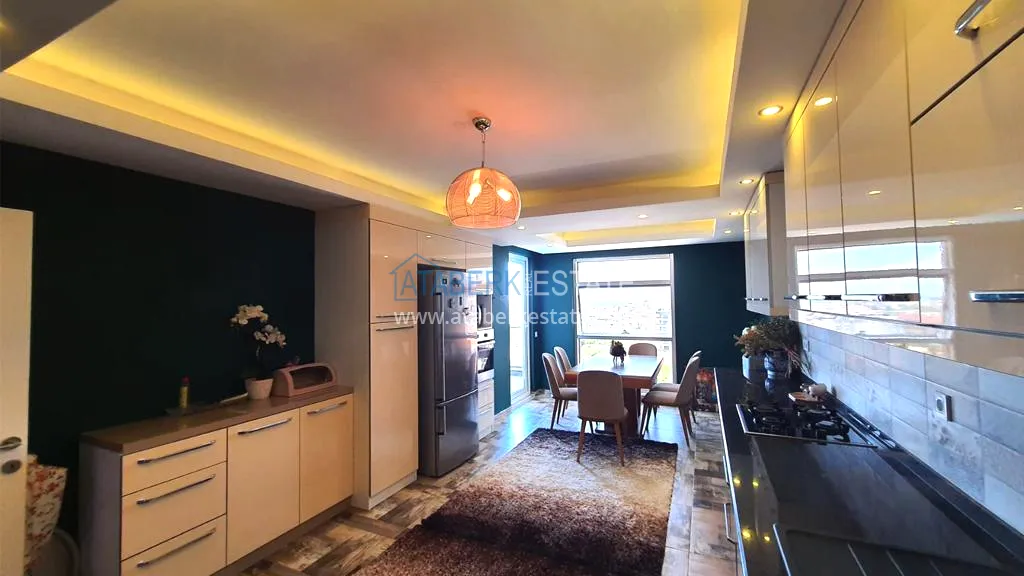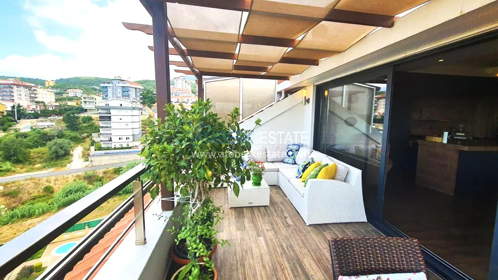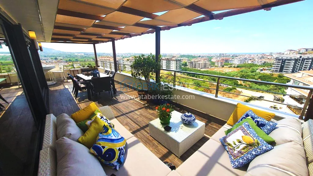 The 5+2 apartment has five bedrooms and two living rooms, one of which is combined with an open-plan kitchen, as well as a separate classic-style kitchen. This solution is convenient for permanent residence and allows you to properly zone the space. The apartment has two bathrooms and a separate toilet, which is especially comfortable when the area is large. The 4 terraces and 2 balconies deserve special attention. The orientation is south, east and west, so the apartment is always bright and offers views of the city, green hills and surrounding buildings. The penthouse is sold fully furnished, ready to move in without additional investments.