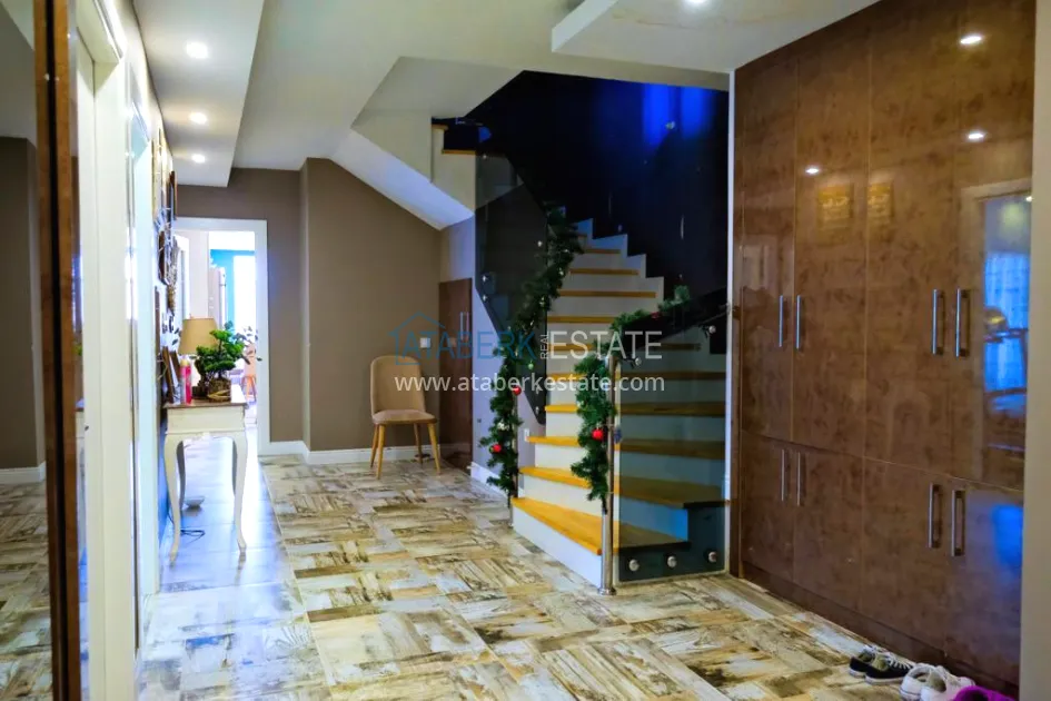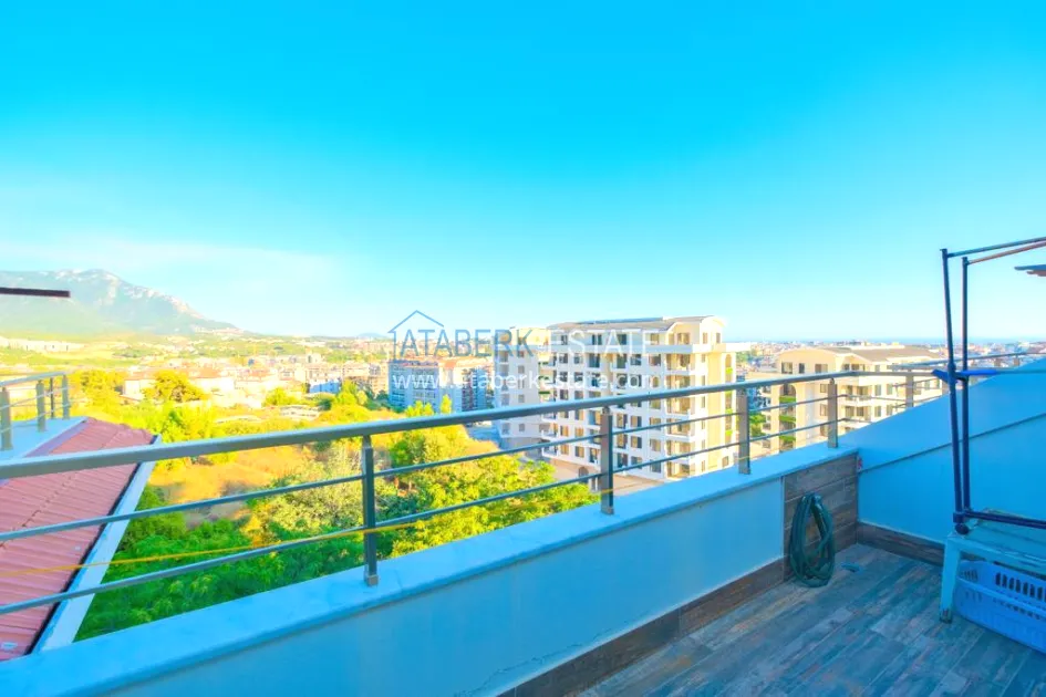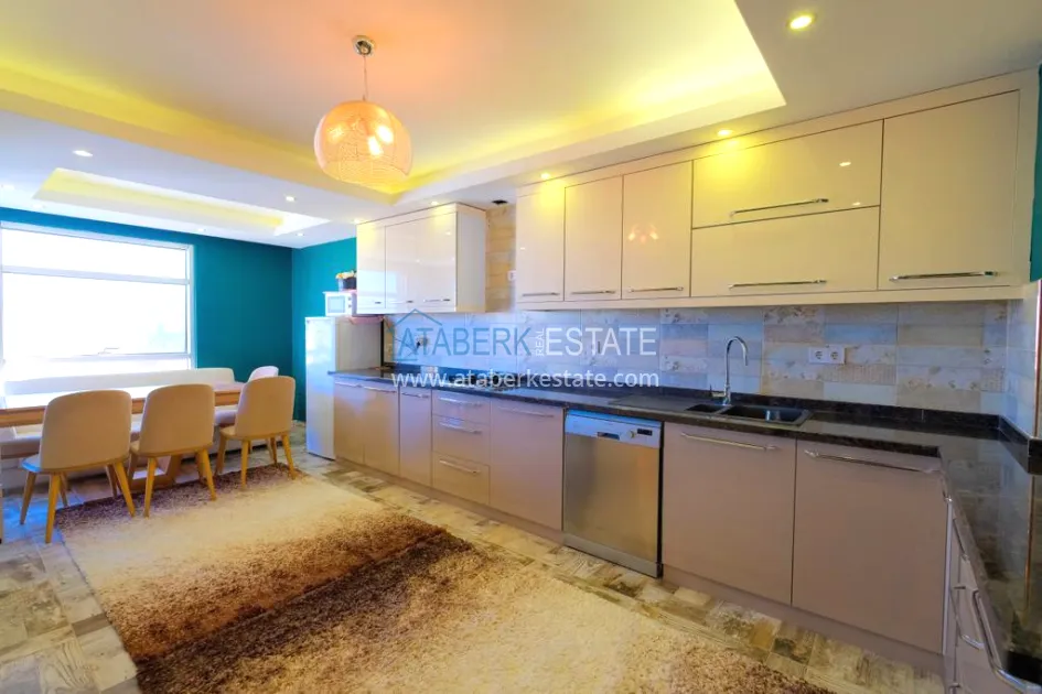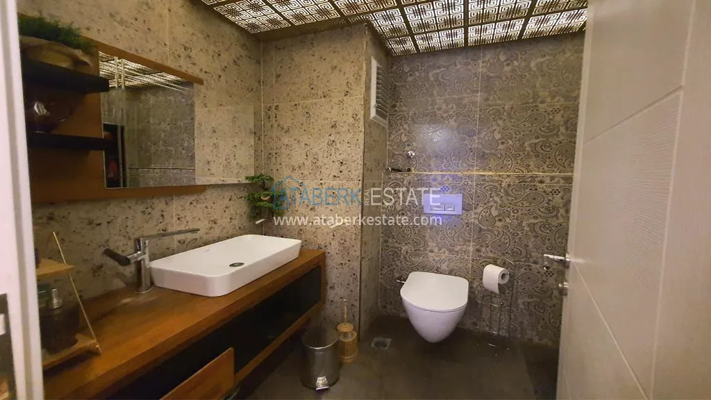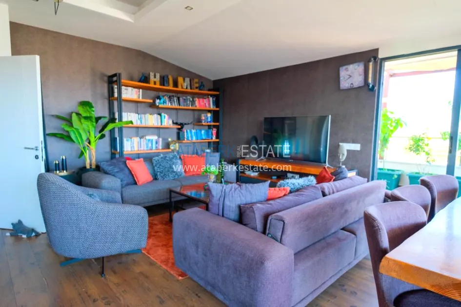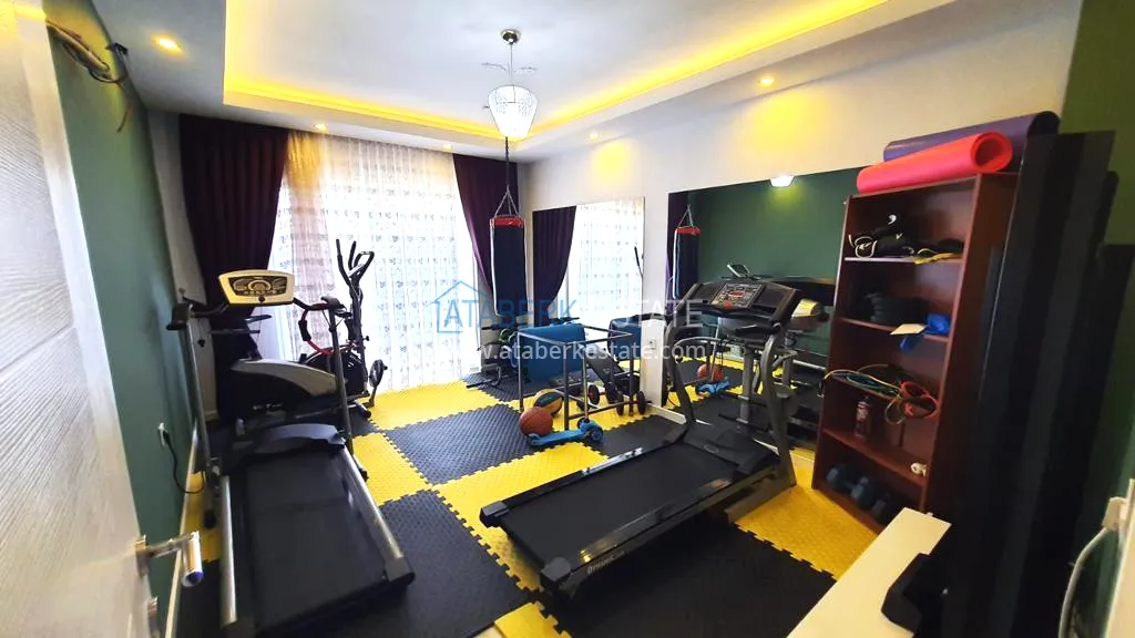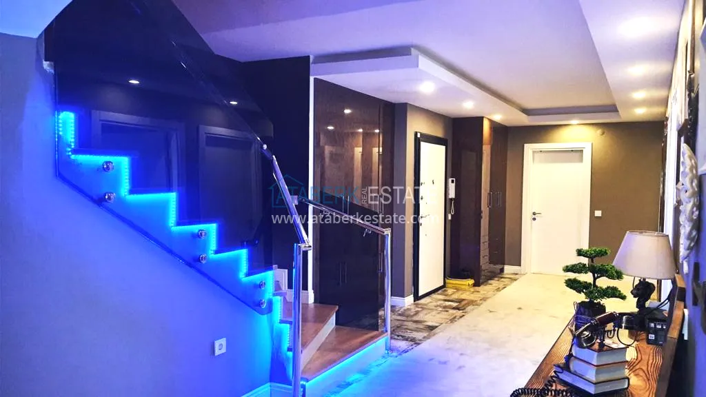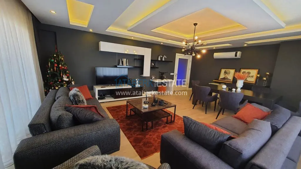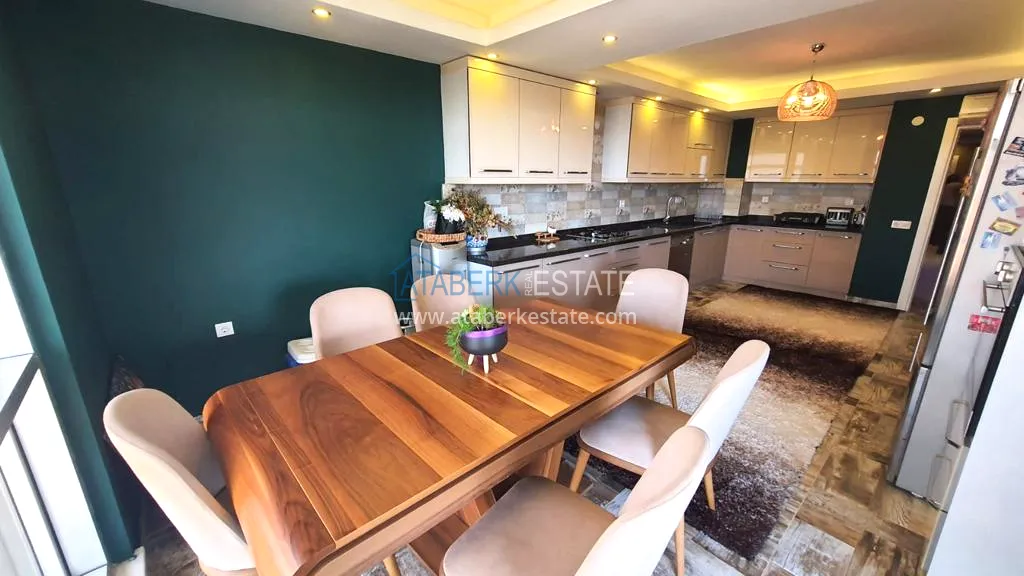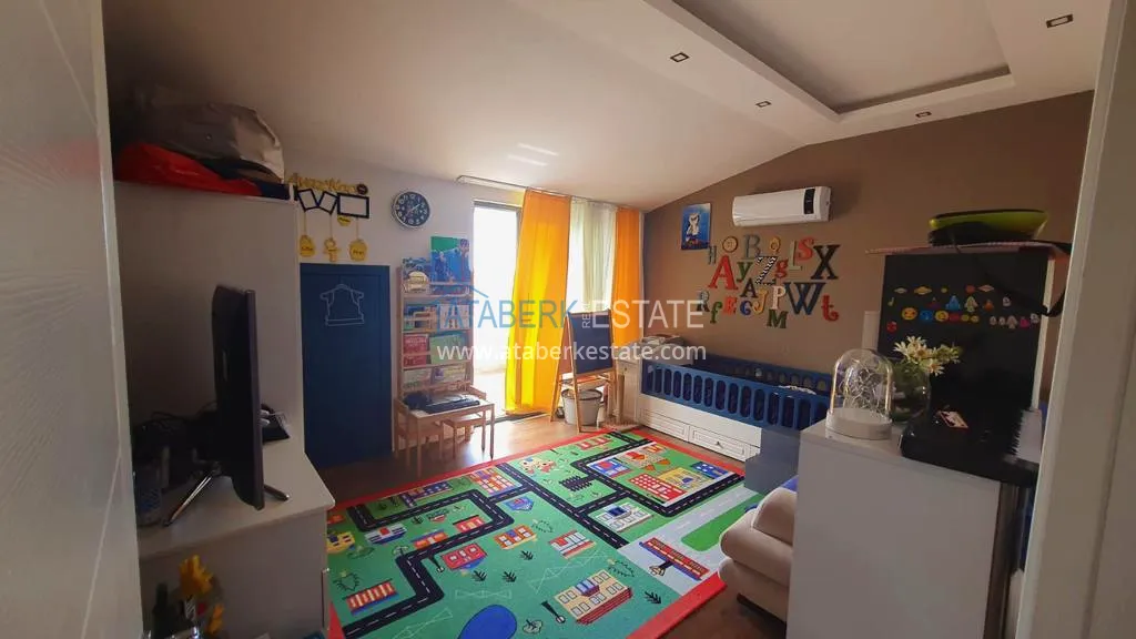 The 5+2 apartment has five bedrooms and two living rooms, one of which is combined with an open-plan kitchen, as well as a separate classic-style kitchen. This solution is convenient for permanent residence and allows you to properly zone the space. The apartment has two bathrooms and a separate toilet, which is especially comfortable when the area is large. The 4 terraces and 2 balconies deserve special attention. The orientation is south, east and west, so the apartment is always bright and offers views of the city, green hills and surrounding buildings. The penthouse is sold fully furnished, ready to move in without additional investments.