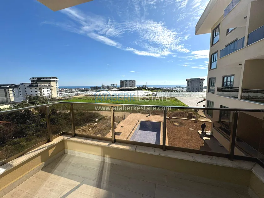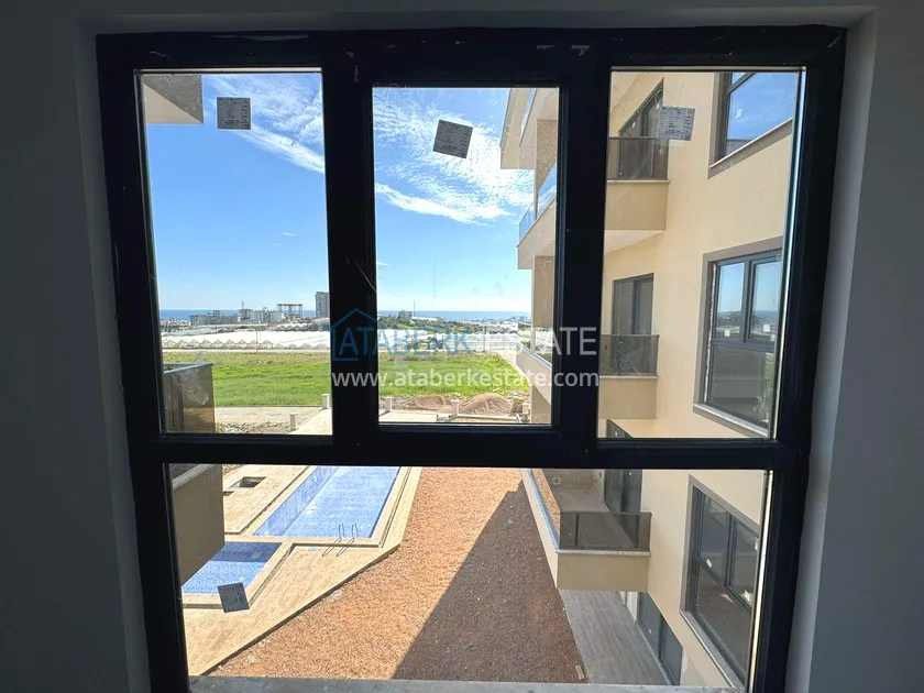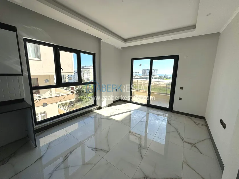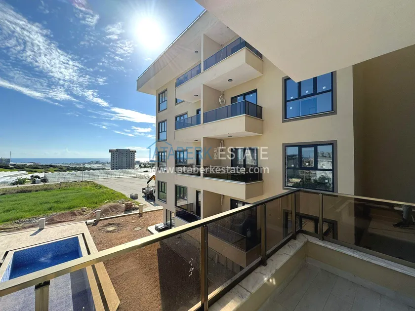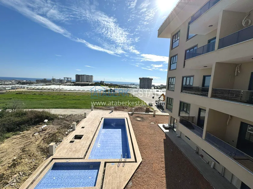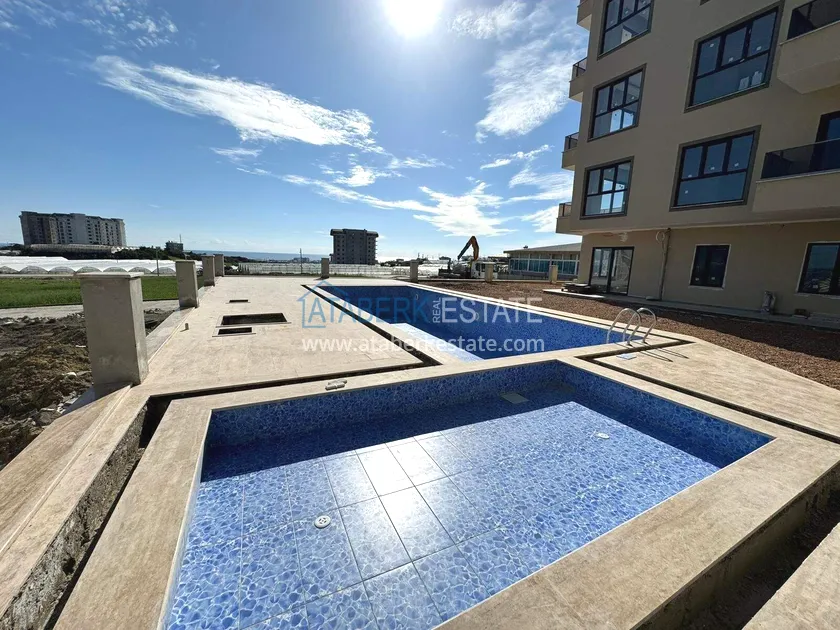The1+1 apartment with a total area of 50 m² is located on the 2nd floor and is offered unfurnished, which allows you to decorate the space completely to your liking. The layout includes a living room with a kitchen area, a bedroom, a bathroom and a balcony. The apartment offers views of the pool and partly the sea, which adds to the attractiveness of the property.