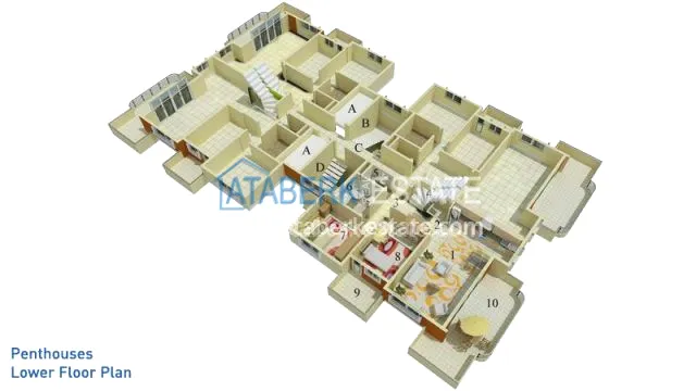-Each apartment includes: 2 bedrooms, living room, a bathroom, an additional toilet, storage room, 2 balconies