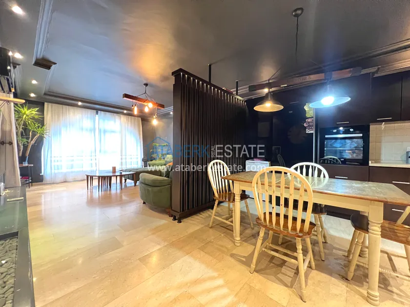 The 2+1 apartment is located on the 7th floor, oriented to the south-west, with a total area of 110 m2. This square houses: an entrance hall, a living room combined with an open-plan kitchen, two bedrooms, two bathrooms and two balconies. It is sold in the form in which it is shown in the photo.