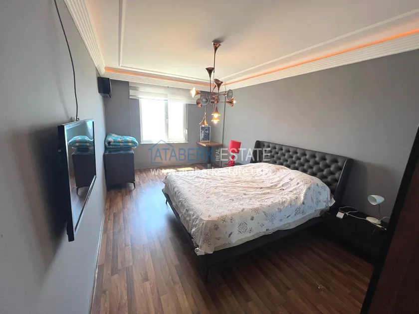 The 3+1 apartment is located on the 6th floor and the total area is 164 m2. This square contains: an entrance hall, a living room combined with an open-plan kitchen, three bedrooms, two bathrooms and two glazed balconies. It is sold with all furniture and appliances, as in the photo.