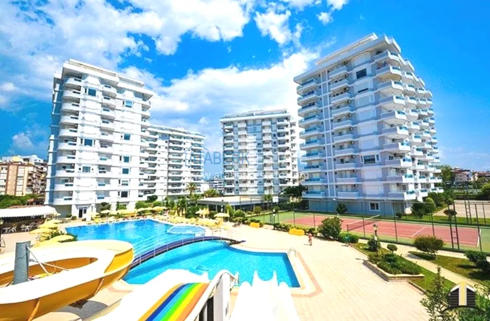 This comfortable residential complex is located along the Dim-Chay mountain river and has a well-groomed, protected large area. The complex has access to the river embankment, as well as an underground passage to the beach. All the necessary urban infrastructure is 100 meters from the house, the district center is 200 meters away, and the center of Alanya is only 10 minutes away by public transport.