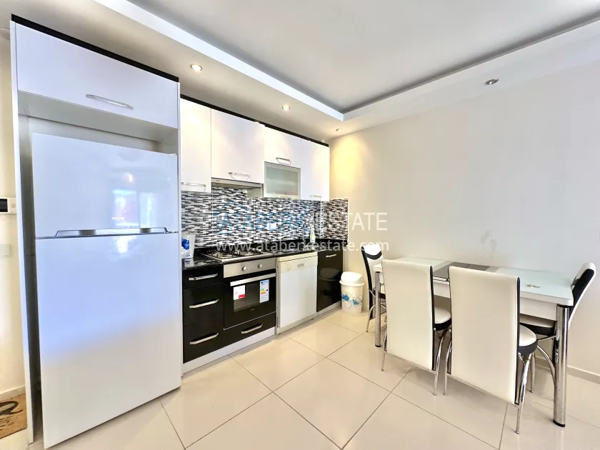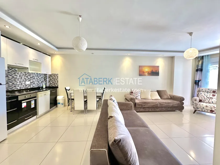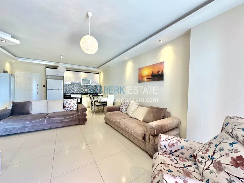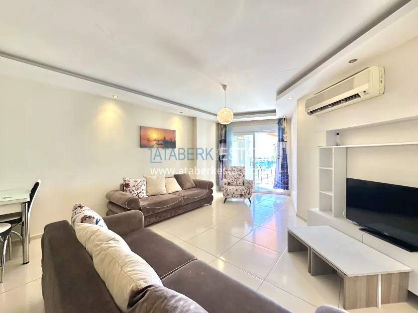 The 1+1 apartment is located on the 5th floor and the total area is 65 m2. This square houses: a living room combined with an open-plan kitchen, a bedroom, a bathroom and a balcony overlooking the sea. It is sold in the form in which it is shown in the photo.