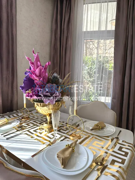 The offered apartments are located in a small residential complex that has a well-maintained area and minimal infrastructure. Aydat is 450 lira per month. There are grocery stores near the house, the nearest city beach is 500 meters away, and the center of Alanya is 15 minutes away by bus.