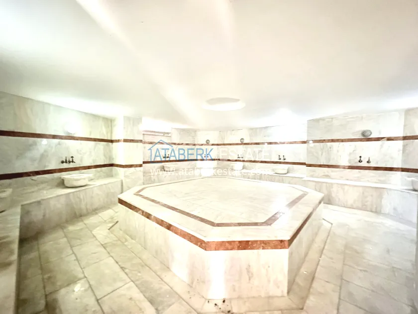 The residential complex consists of one 9-storey block and has a well-maintained closed area. It has created a comfortable atmosphere for year-round living: a swimming pool, a relaxation area, a sauna and a parking lot. Aydat — 1500 lire. The sea is only 600 meters away, and shops, pharmacies, cafes, markets and public transport stops are within walking distance.