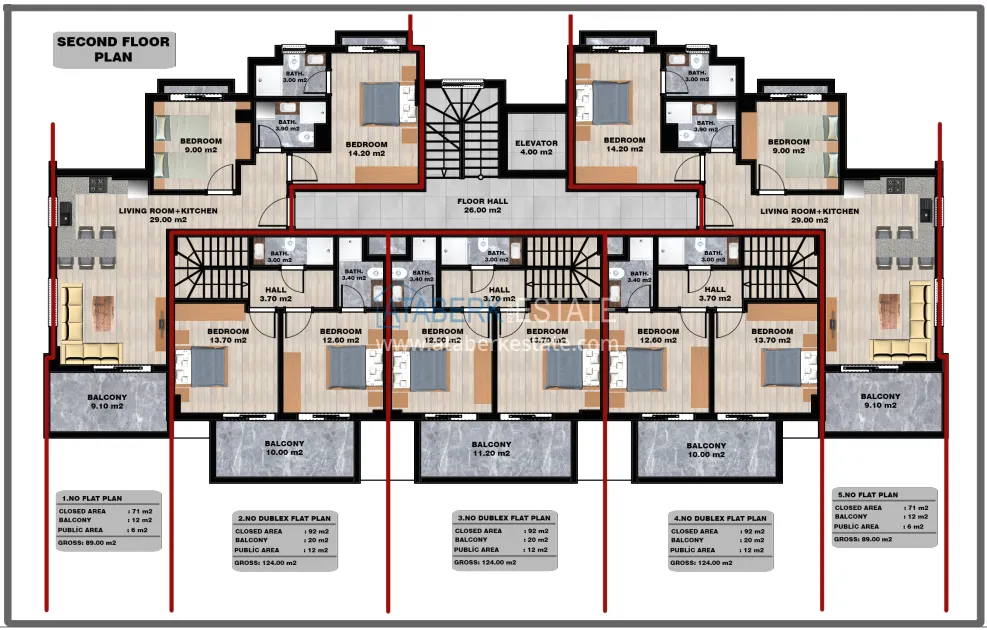 The 2+1 apartment has a clever two-level space of 124 m². On the first level, there is a living room with an American-style kitchen, a bathroom and access to a private terrace overlooking the pool - an ideal place for a relaxing vacation. On the second level there are two cozy bedrooms, two bathrooms and a balcony. The apartment is sold unfurnished, with high-quality finishing, which will allow you to decorate the interior to your liking.