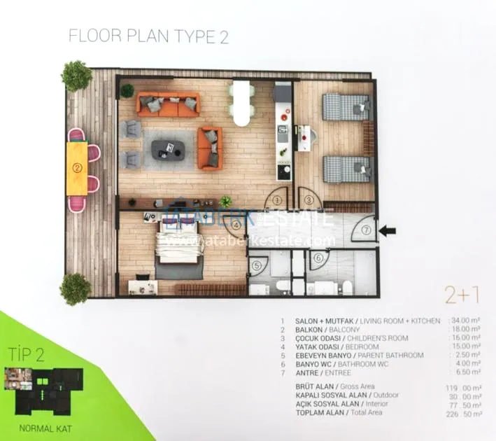 A beautiful new complex with its own infrastructure was built in one of the coastal regions of Alanya, not far from the mountain river Dim Chay. The attractiveness of this area lies in the proximity to the center of Alanya (about 4 km), large shopping supermarkets and the city hospital. In Tosmur, the natural harmony of the sea, mountains, green forests and delightful beaches is clearly visible. Here, the entire infrastructure of the city is within easy reach, recreation areas are well organized, and municipal transport operates. Well-groomed embankment, many shops, supermarkets, cafes, there are pharmacies and a bakery.