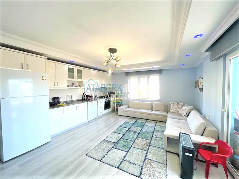 The residential complex is located in the Tosmur area - not far from the center of Alanya. It has a closed area and its own infrastructure. Aydat - 200 lira per month. Within walking distance from the house there is all the necessary urban infrastructure of the area. The nearest city beach is only 200 meters away (approximately 3 minutes walk).