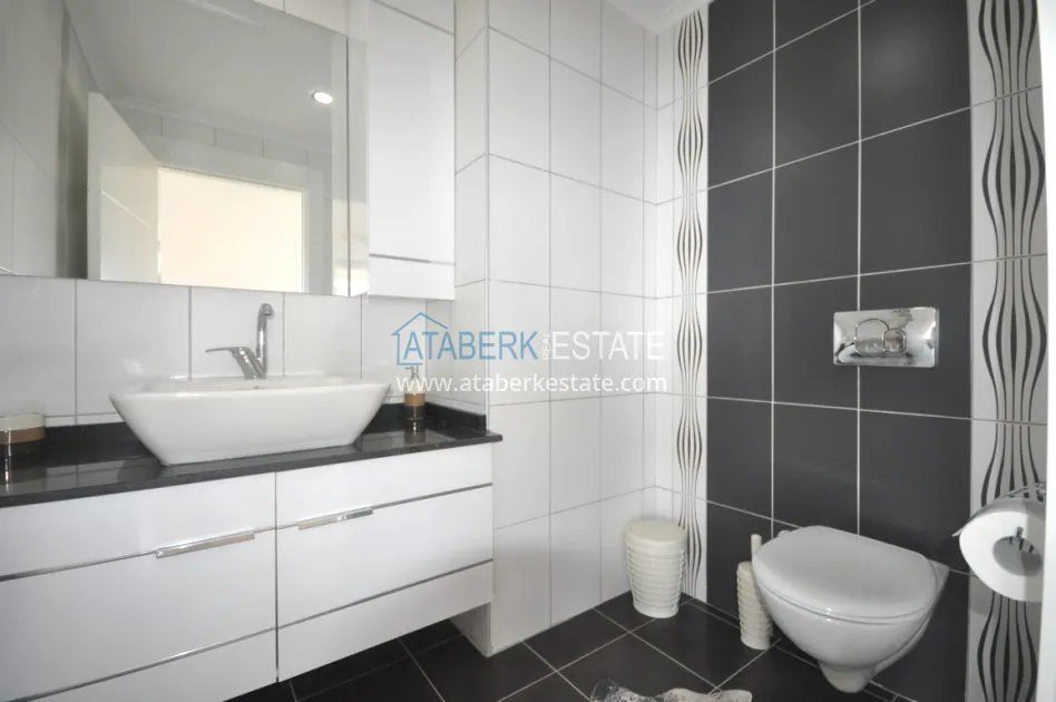 The residential complex is located in the Tosmur area. It consists of one 8-storey building and an adjacent closed territory, there is an equipped lounge area on the roof of the house. Aydat - 350 lire per month. City beaches and the promenade are just 100 meters away. This area of Alanya is quiet, cozy and comfortable. For adherents of everything useful, once a week a farmer's market with fresh fruits and vegetables is held in the area. Not far from the complex there are shops, a Migros supermarket, restaurants and cafes, a bakery. The center of Alanya is a five-minute drive by public transport, stops are also nearby.
