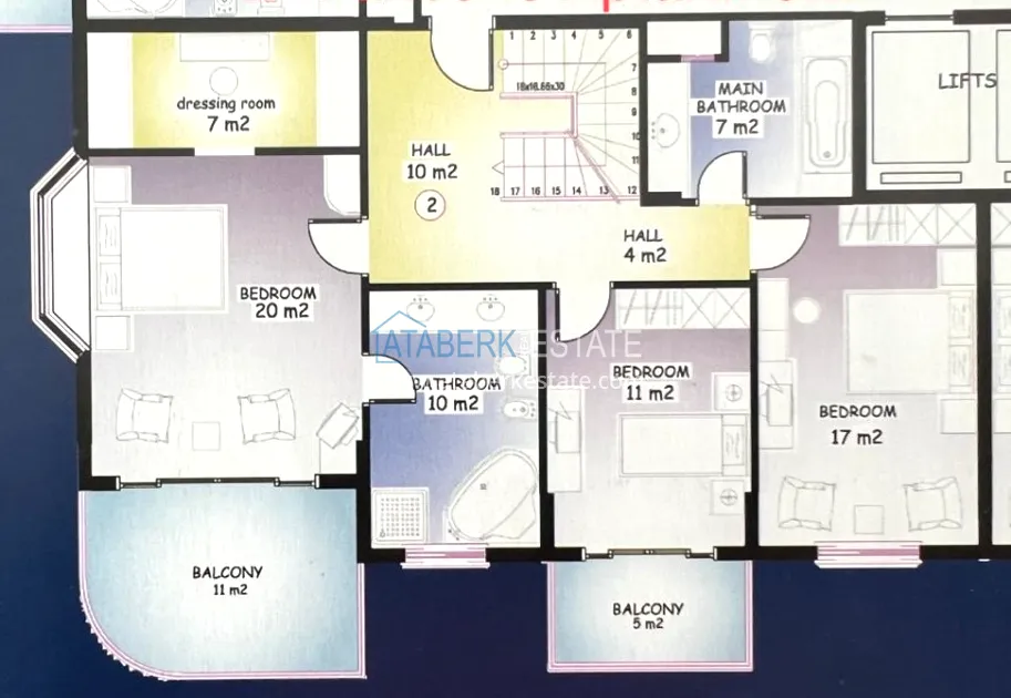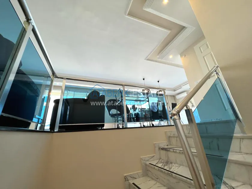 This duplex is located in a well-maintained complex located in one of the most popular areas of Alanya — Tosmur, on the beachfront. The property offers not only breathtaking panoramic views of the Dim River, the Mediterranean Sea and the fortress, but also all the amenities for a comfortable life. The complex offers a high level of comfort with a protected area, access to the river embankment and an underground passage to the beach, which makes living in this place not only convenient, but also safe. All city infrastructure, as well as well-developed transport links, are within walking distance — the center of Alanya can be reached in 10 minutes by public transport.