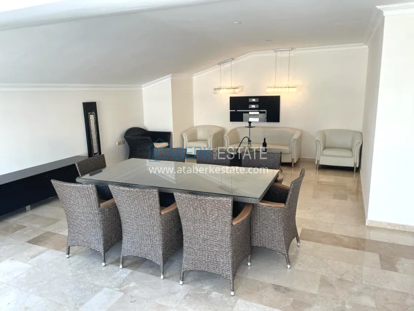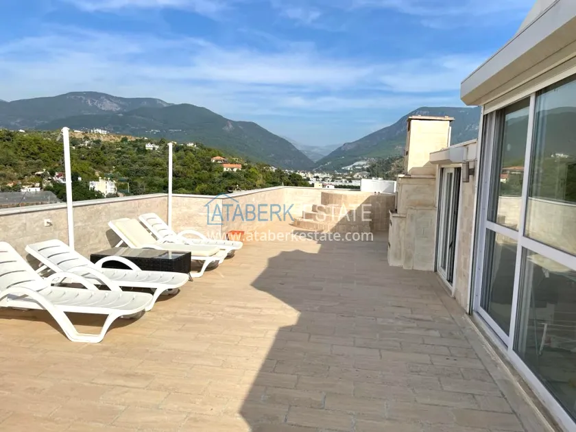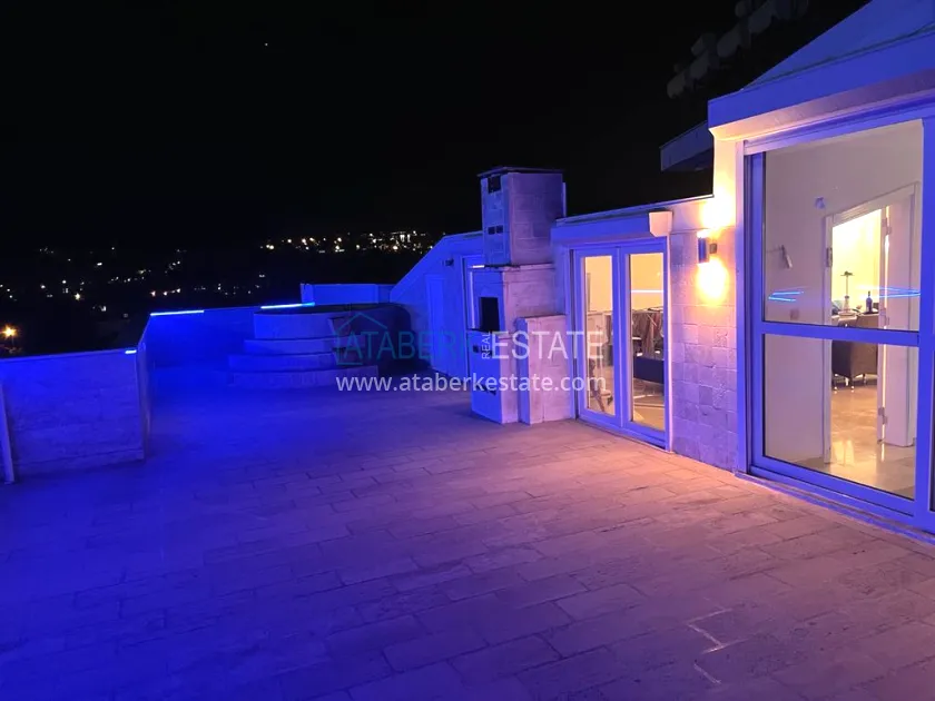 The five-room penthouse has two floors and a total area of 275 m2. Its layout includes: a living room combined with an open-plan kitchen, 3 bedrooms, a lounge and 2 bathrooms (one on each floor). The apartment also has spacious balconies and an outdoor terrace on the upper level with amazing views of the mountains and the city surroundings. The property is for sale with furniture, household appliances and interior items.
