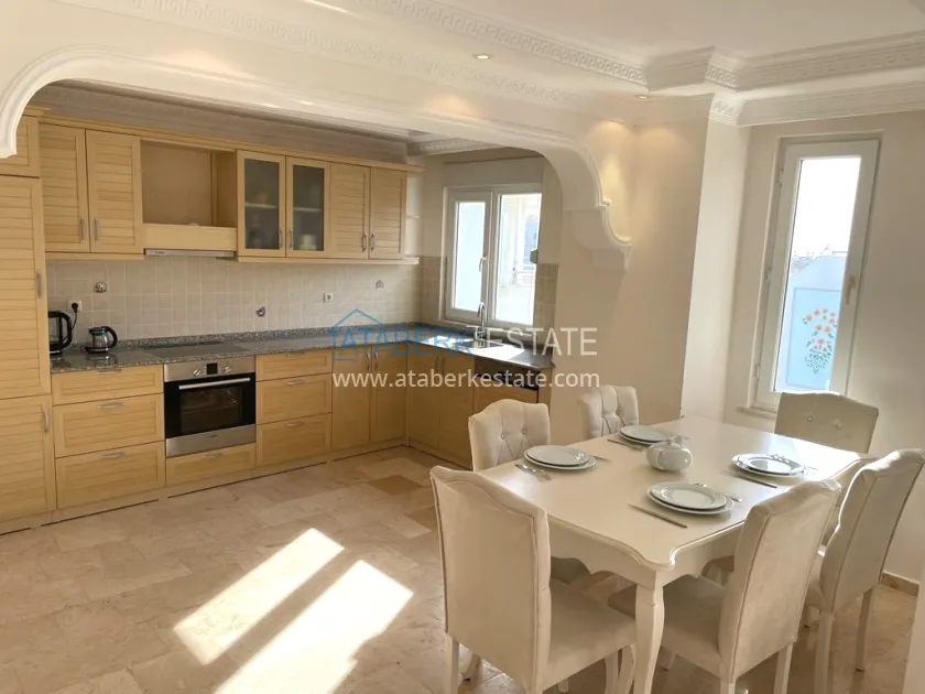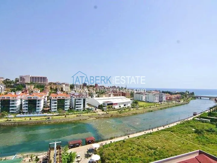 The complex consists of one block and has self-sufficient infrastructure including an outdoor pool with a children's area and a tennis court. Next to the residential complex, instead of a dusty road with cars, is the Dim-Chay mountain river, along which there is a walking area with gazebos, exercise equipment, playgrounds and benches. The beach is just an 8-10 minute walk away — 500 meters. The beach in this area is one of the best, the beach line is wide, there are no layers of concrete stones, and the water is clear. Also near the house is all the necessary household infrastructure in the area — a Migros supermarket, small grocery stores, cafes, etc. In addition, there is a farmers market nearby on Thursdays. And if you go up the river, about 10 minutes by car, you will find yourself in the magical world of orange, tangerine, avocado trees and a cascade of cafes on the water along the river, and if you drive for another 5 minutes, you will see a beautiful canyon with a reservoir of clear turquoise water. You can go skiing and have a picnic.