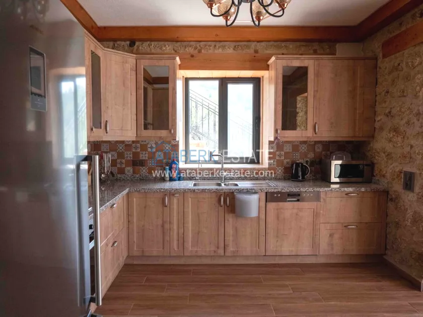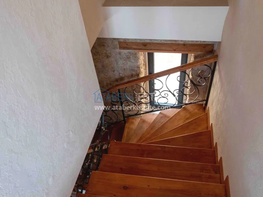 Villa with a total area of 350 m2, layout 5 + 1, there is a private plot with a private pool of 839 m2. On three levels of the house there are: a living room, 2 open-type kitchens, 5 bedrooms, a sauna, 3 bathrooms, a large open balcony. There is a storage room. A distinctive feature of the house is the interior decoration - stone walls, beams on the ceiling and a working fireplace in the living room, which creates a very cozy atmosphere in the house.