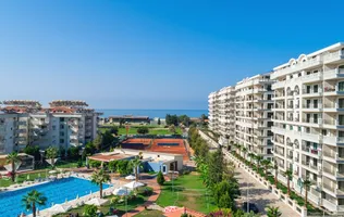Real estate under construction in Alanya. Luxurious family complex with amazing infrastructure and private beach.