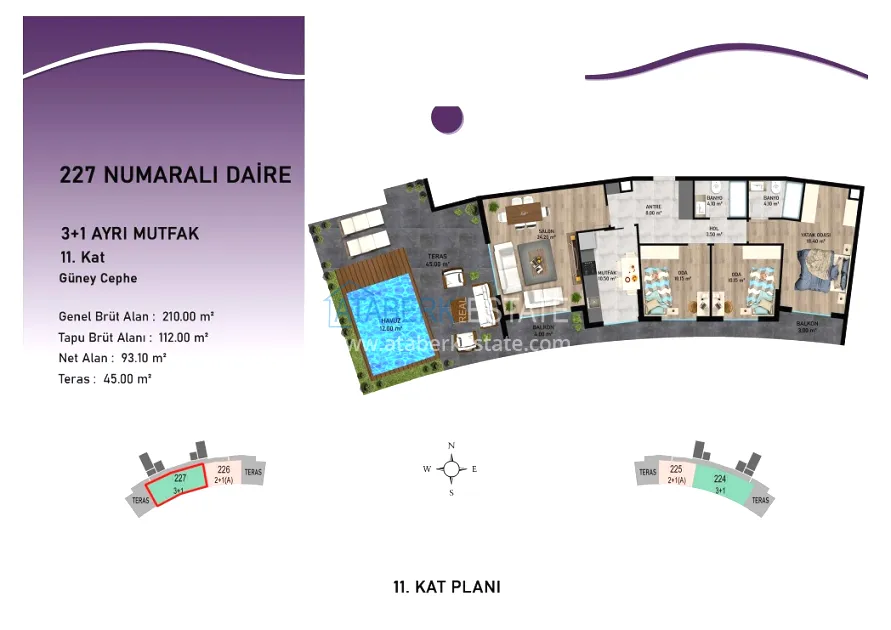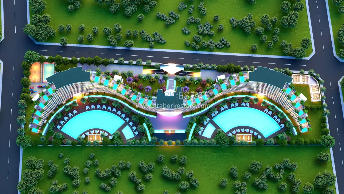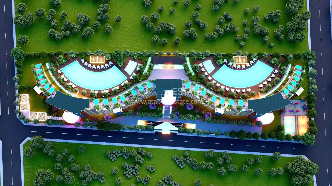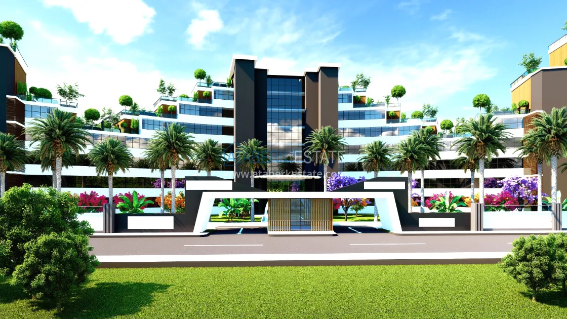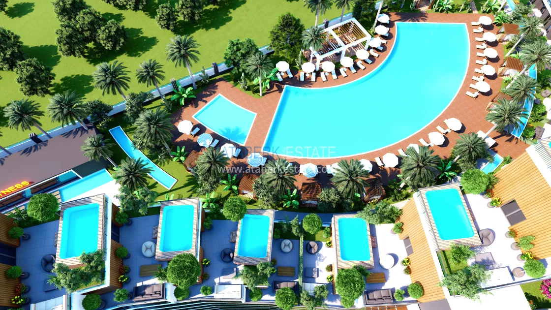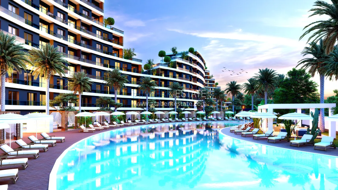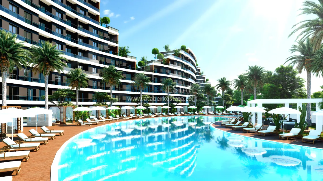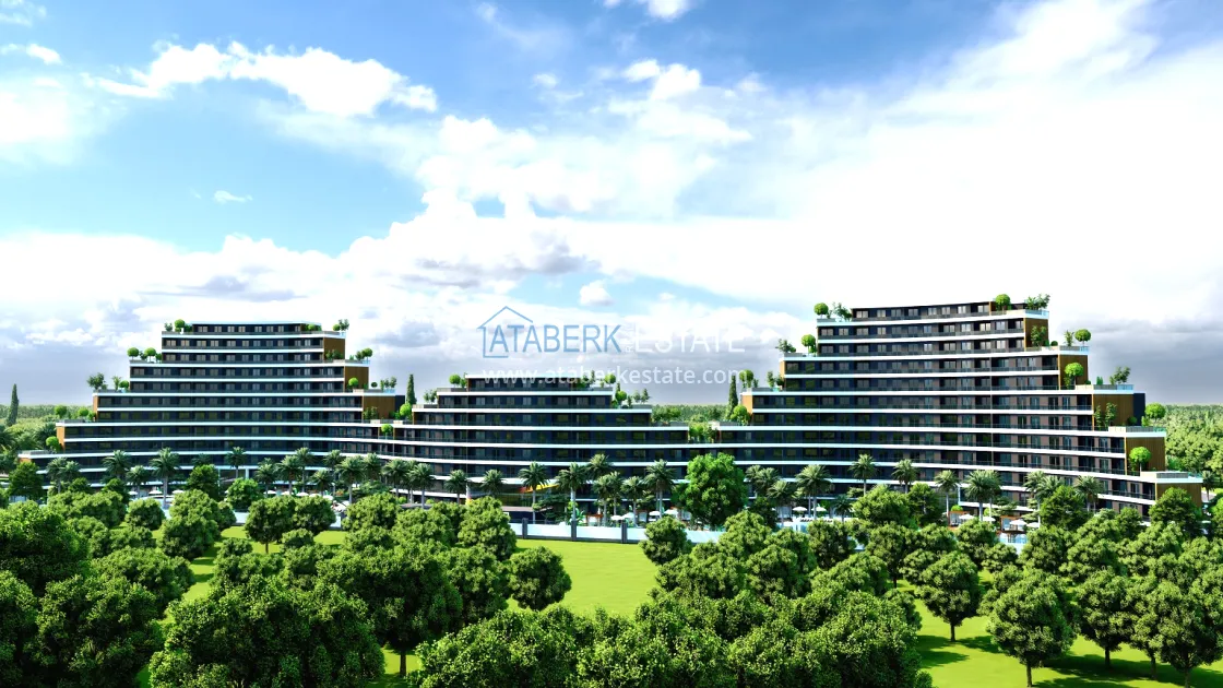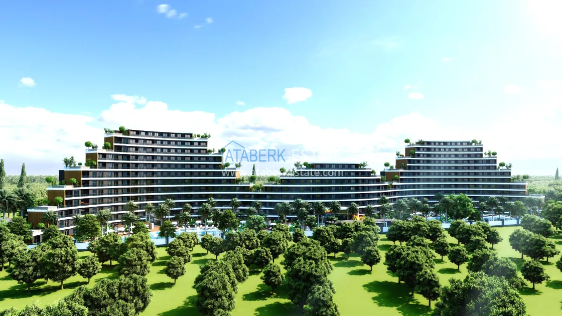 Layouts: 1+1, 2+1, 3+1 with American and separate kitchens. The area varies from 46 to 112 m2. The price includes full finishing, built-in kitchen furniture with a set of household appliances, floor heating, air conditioning, wardrobes and fully equipped bathrooms.
