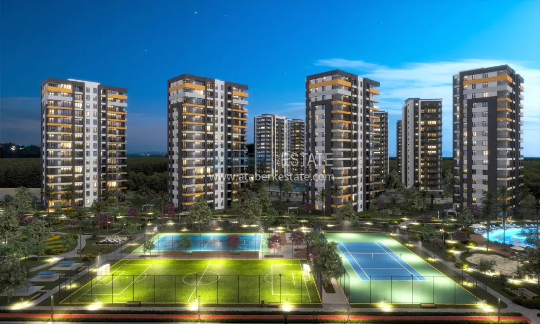 We present to your attention a large-scale residential complex project in the prestigious district of Antalya, Dosemealti. The complex will consist of ten 13-storey blocks and will have both entertainment and social areas. The total building area will be 15,000 m2. There is a protected forest area near the complex, where you can enjoy a walk. Shops, cafes and restaurants will be right outside your home.