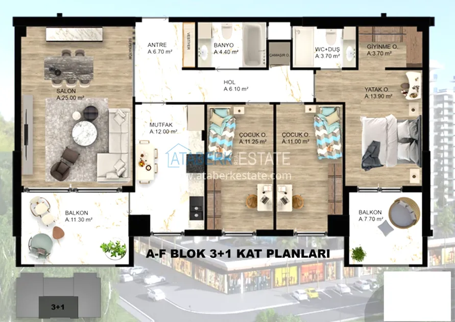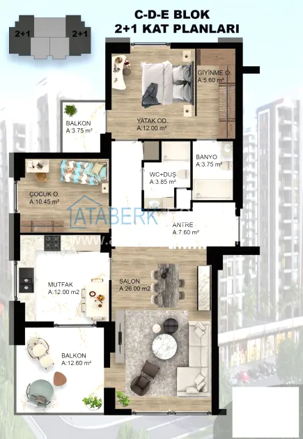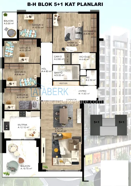The developer combines the most modern technologies and environmentally friendly materials, and various types of functional layouts will allow you to choose the option that is ideal for your family. The project includes 488 apartments. The following layouts are available for sale: 1+1 with an area of 70 m2, 2+1 with an area of 130, 133 m2, 3+1 with an area of 157-160 m2, 4+1 with an area of 193 m2, 5+1 with an area of 207 m2. The price of each apartment already includes: high-quality interior decoration, a kitchen set with a set of built-in household appliances (hob, extractor fan and oven), a wardrobe in the hallway, outdoor blinds on the windows, and an intercom. The complex will be gasified!