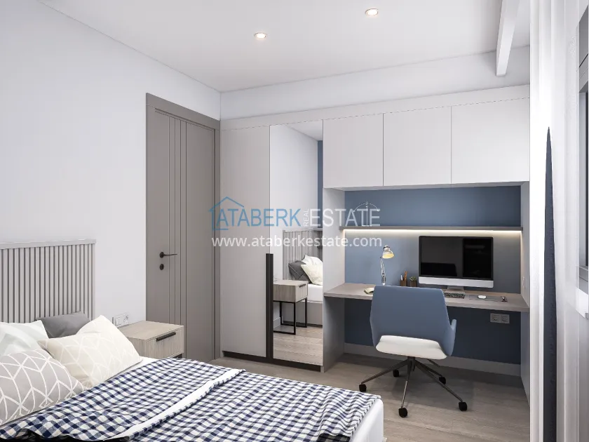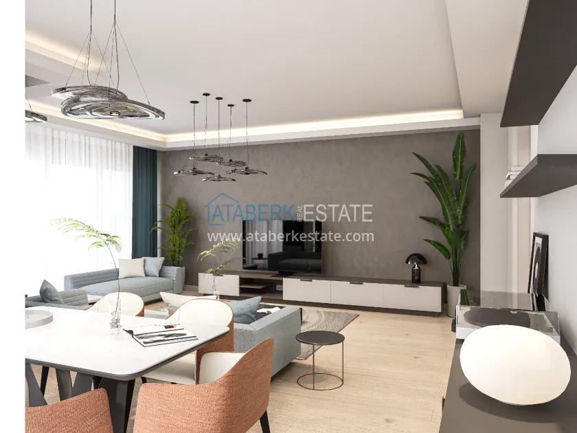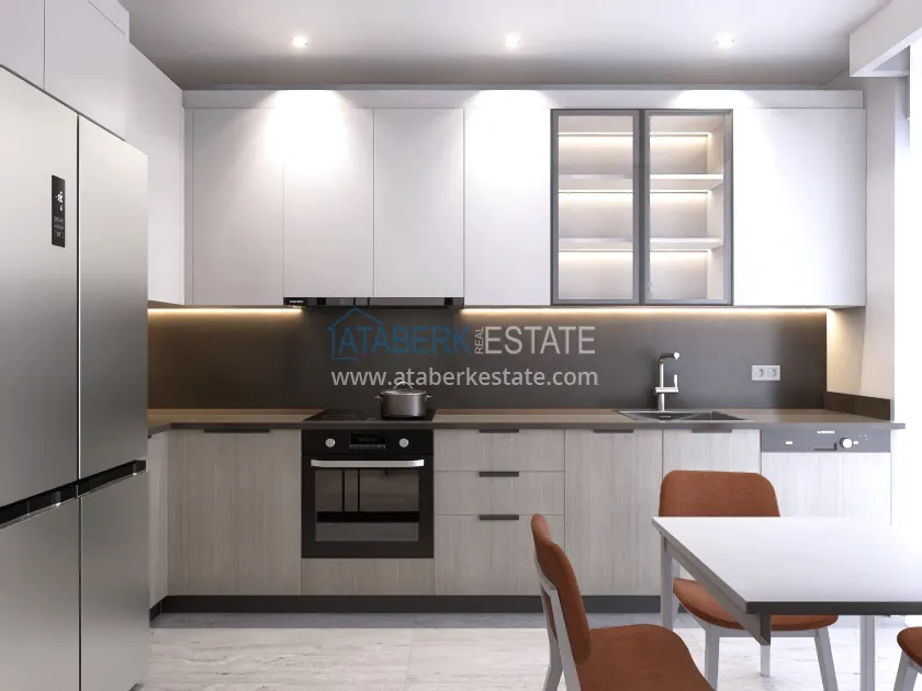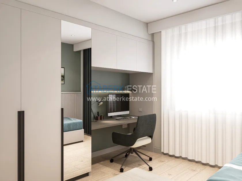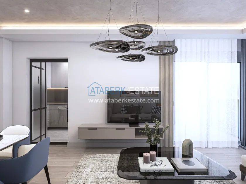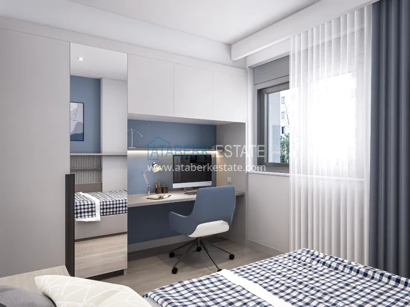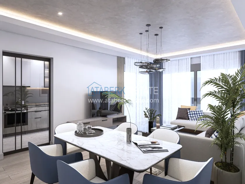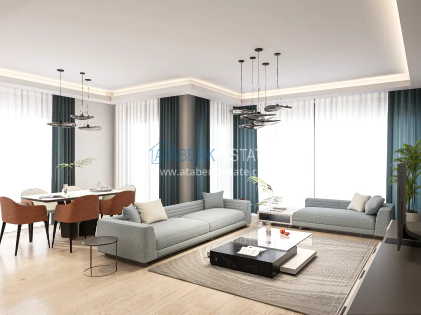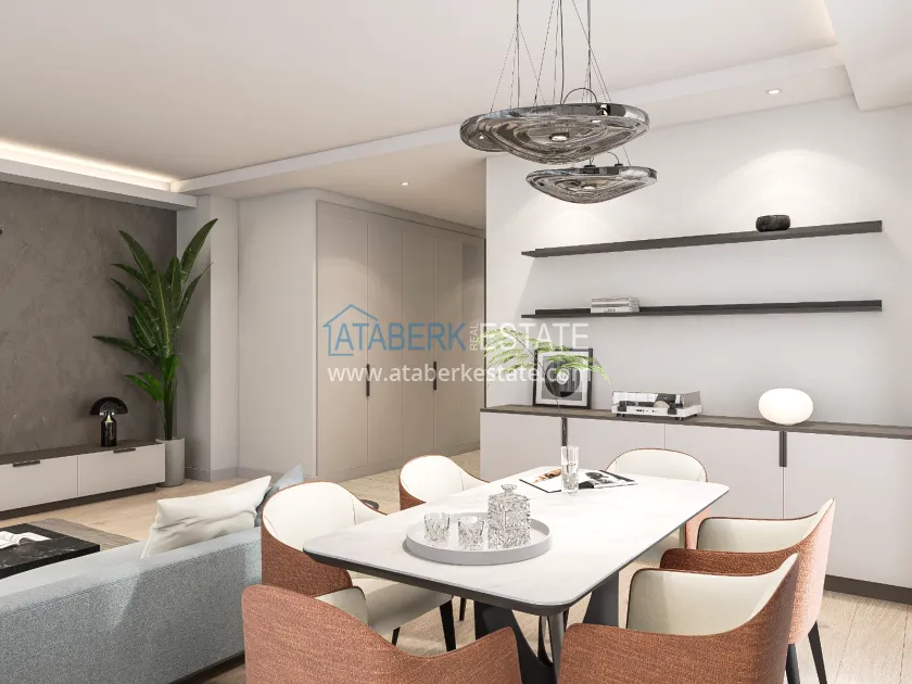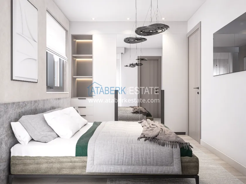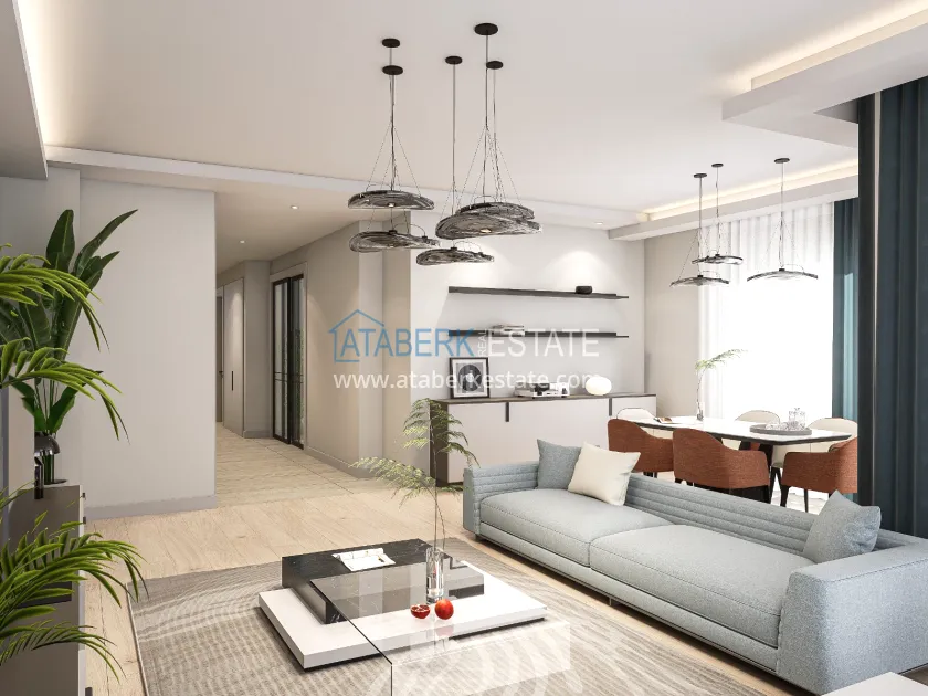 The residence is being built in a closed landscaped area and includes everything you need for everyday comfort. Thanks to a well-thought-out project by the architects, the complex harmoniously fits into the district's landscape, offering residents an atmosphere of comfort and modern urban style. The project has a convenient location: only 2.5 km to Konyaalti Beach, 5 km to the beach park and 4 km to the largest shopping center 5M Migros. The airport is 23 km away, and schools, universities, private clinics and all the necessary shops are nearby.