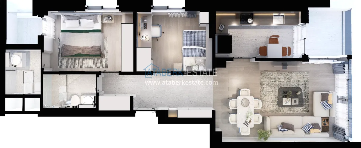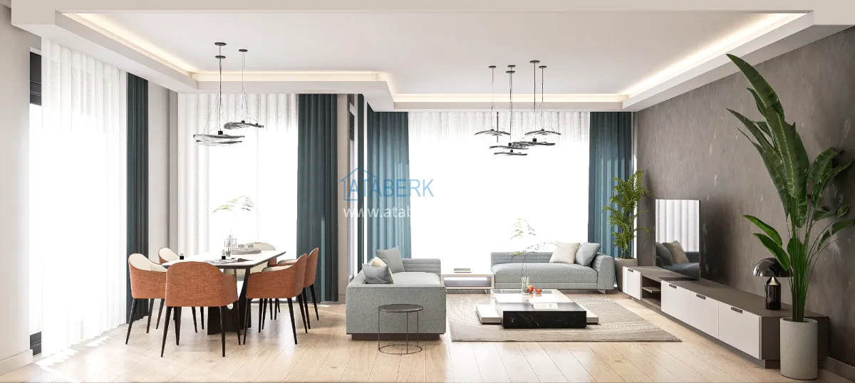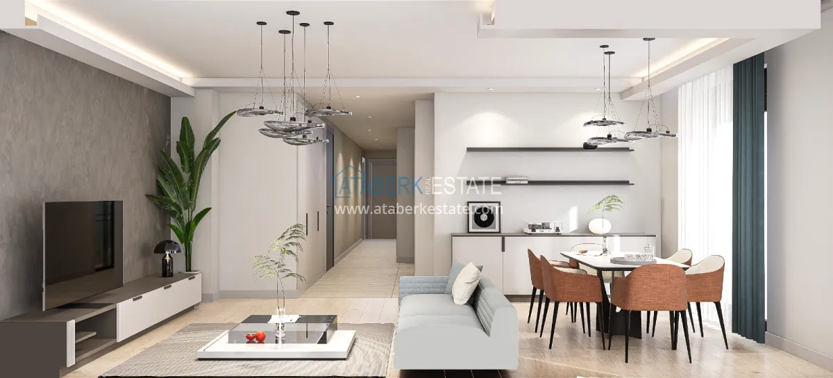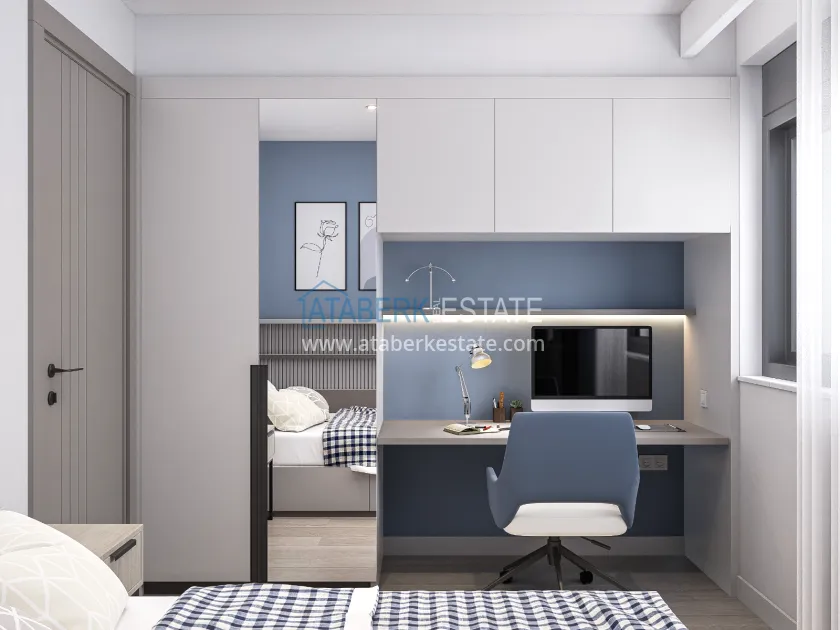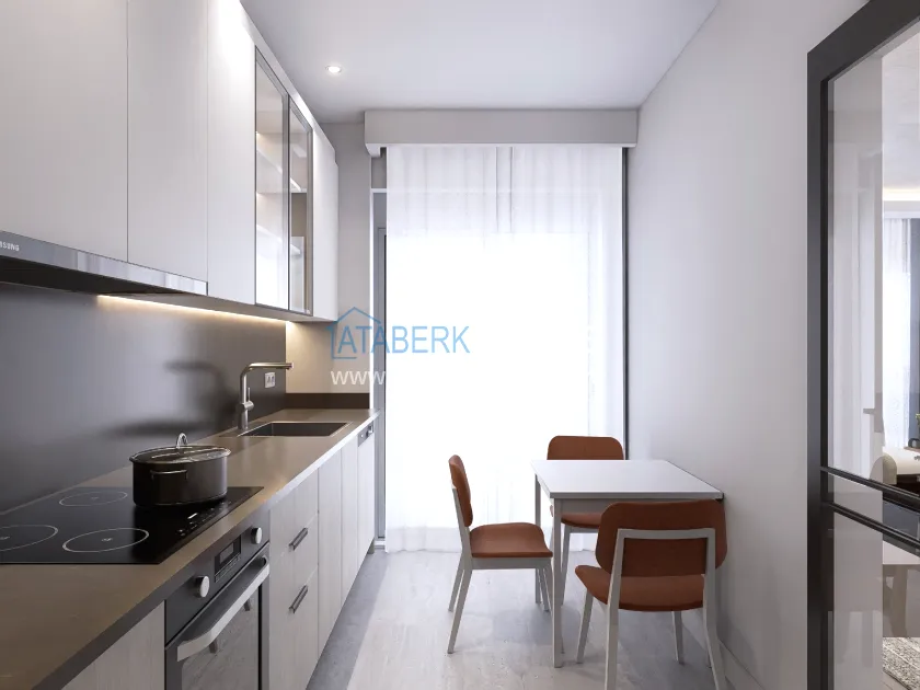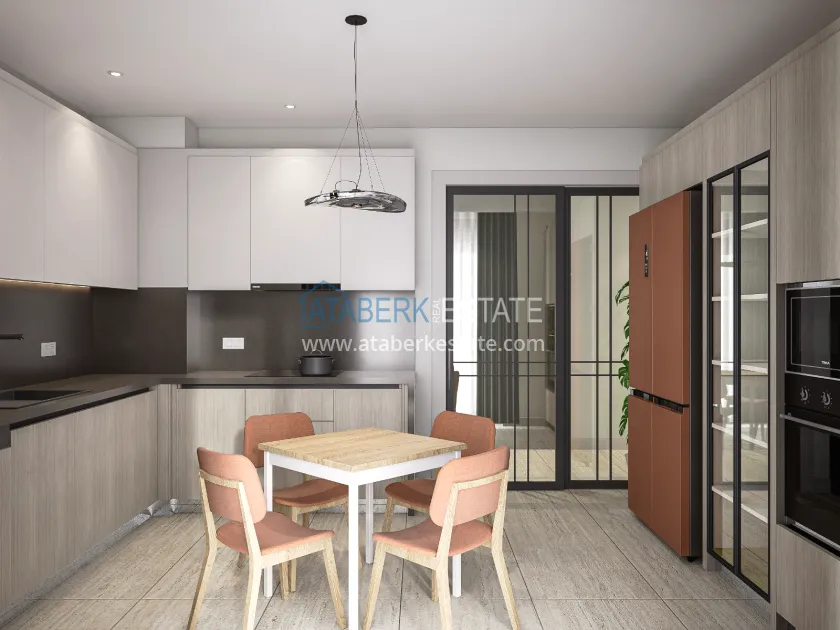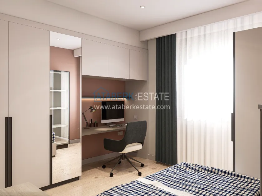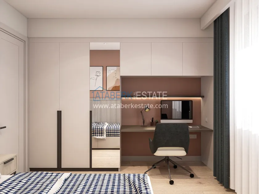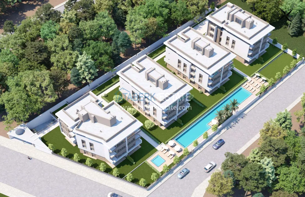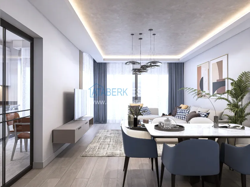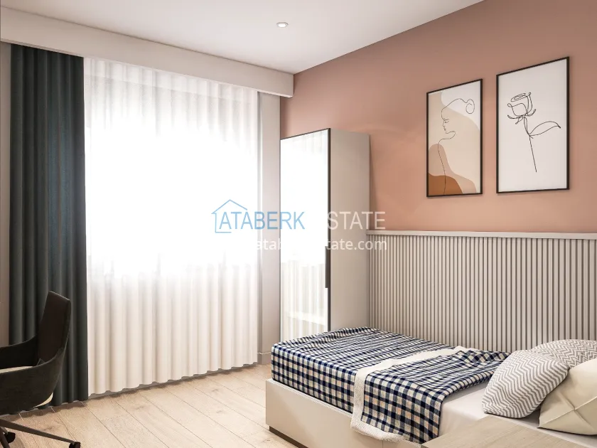 The residence is being built in a closed landscaped area and includes everything you need for everyday comfort. Thanks to a well-thought-out project by the architects, the complex harmoniously fits into the district's landscape, offering residents an atmosphere of comfort and modern urban style. The project has a convenient location: only 2.5 km to Konyaalti Beach, 5 km to the beach park and 4 km to the largest shopping center 5M Migros. The airport is 23 km away, and schools, universities, private clinics and all the necessary shops are nearby.