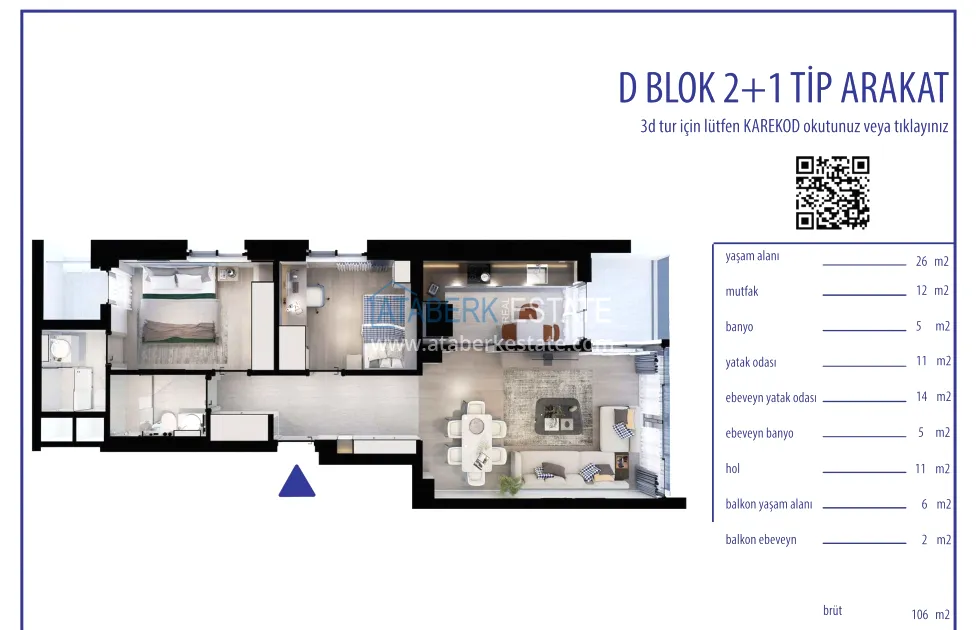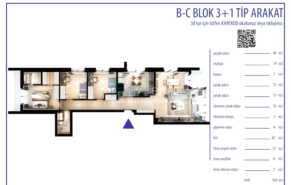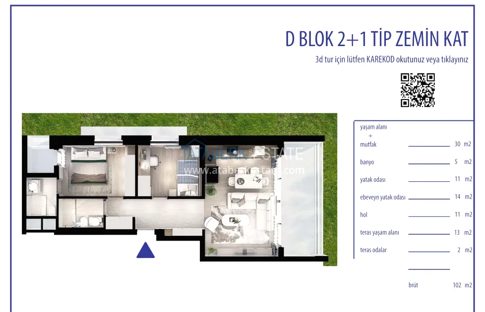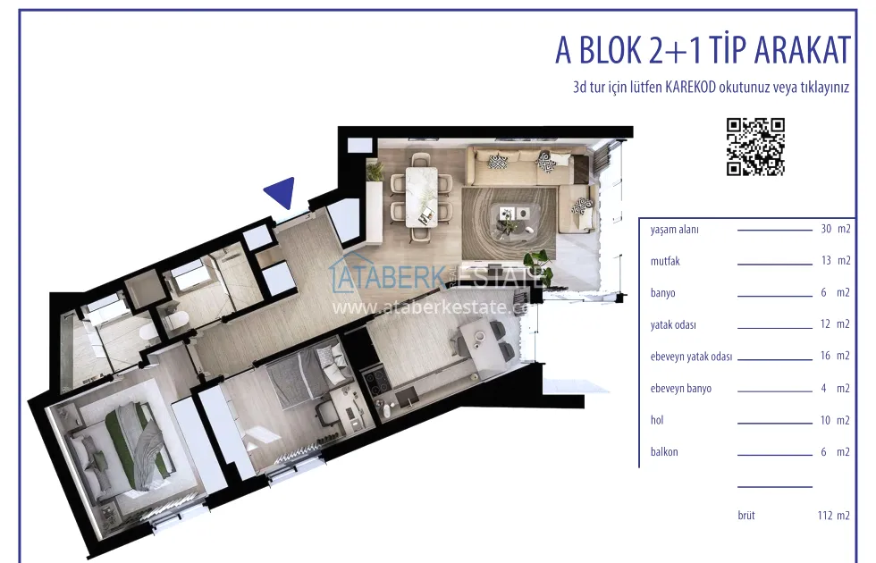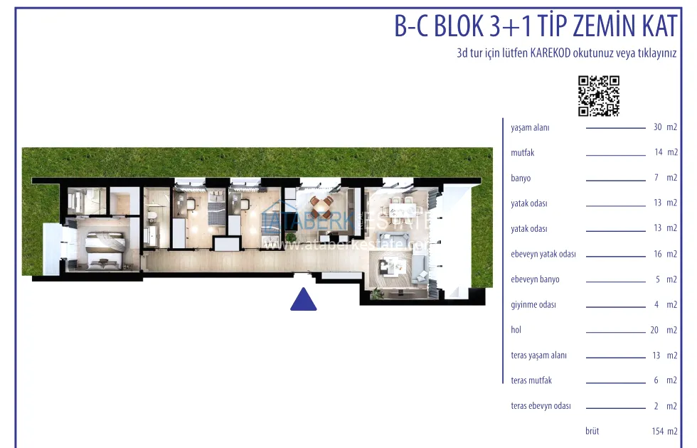 2+1 apartments with an area of 102-112 m2, as well as 3+1 duplexes with an area of 154 and 164 m2 with spacious terraces are for sale. All options are characterized by modern design and functional planning solutions. The interior decoration is made in accordance with current standards: kitchen sets are installed, bathrooms are fully equipped. The buyer receives a turnkey property ready to be arranged in an individual style.