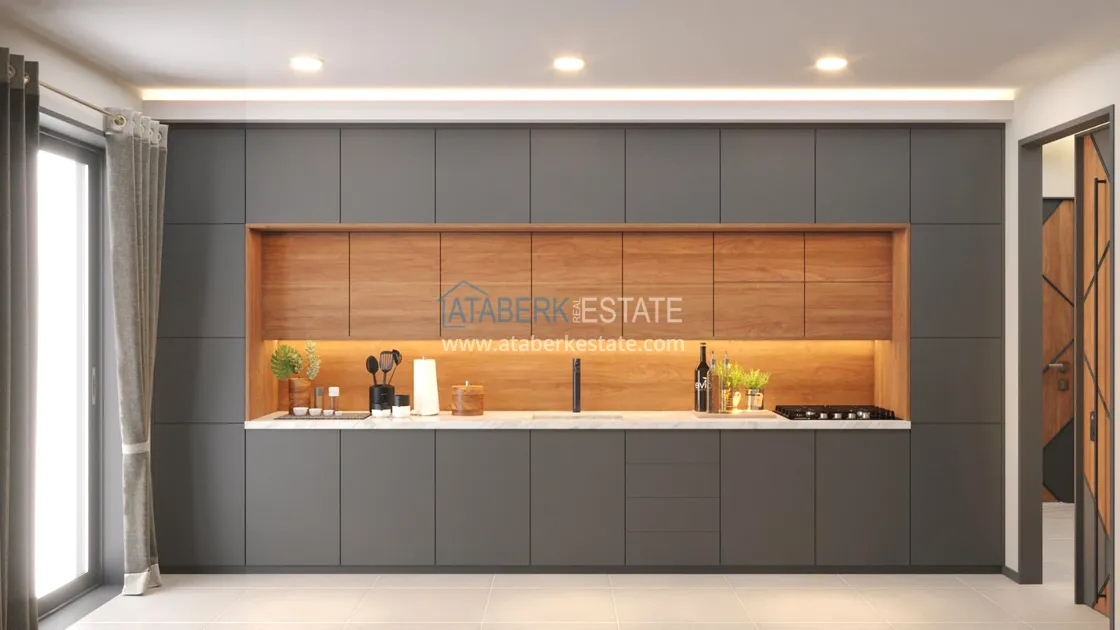 This project is located in the youngest neighborhood of Konyaalti, Syrasu. The main advantages of the microdistrict are unique nature, magnificent views of the mountains, from many apartments in residential complexes there is a beautiful view of the sea, pine forests, proximity to the beach.
