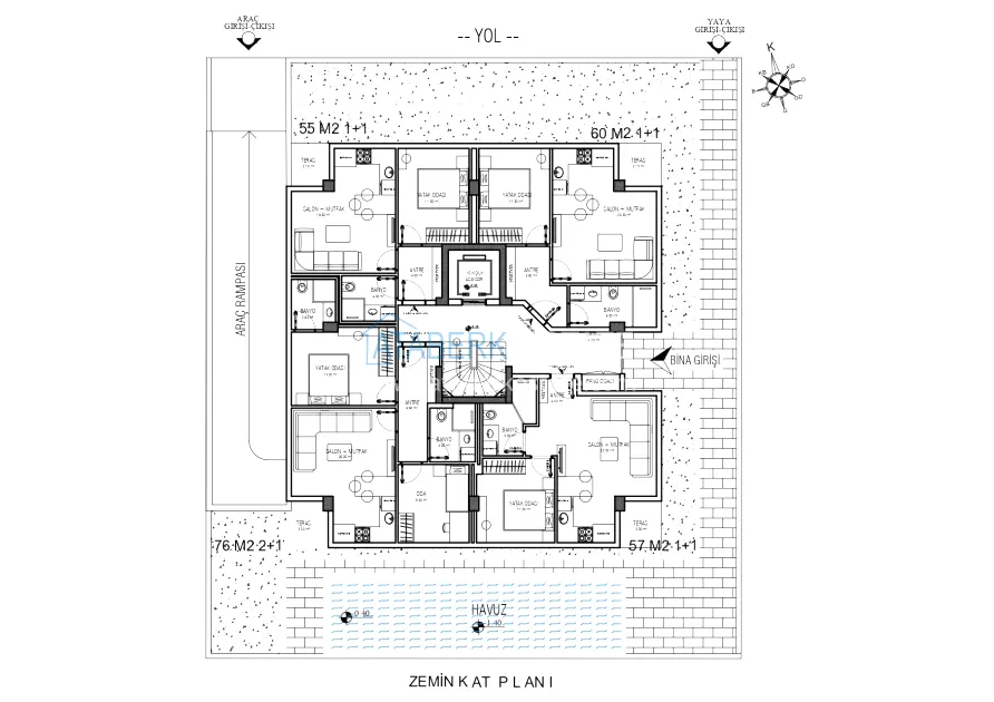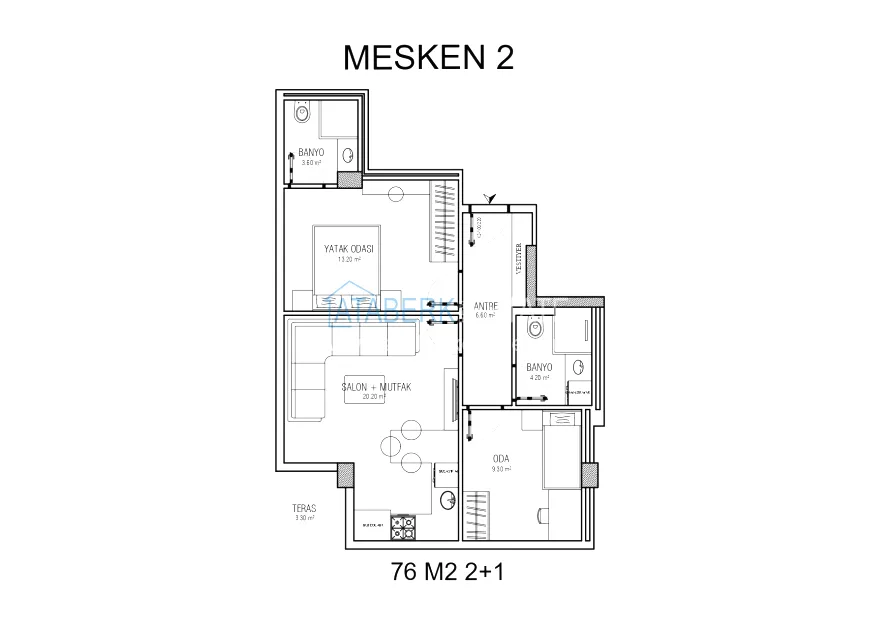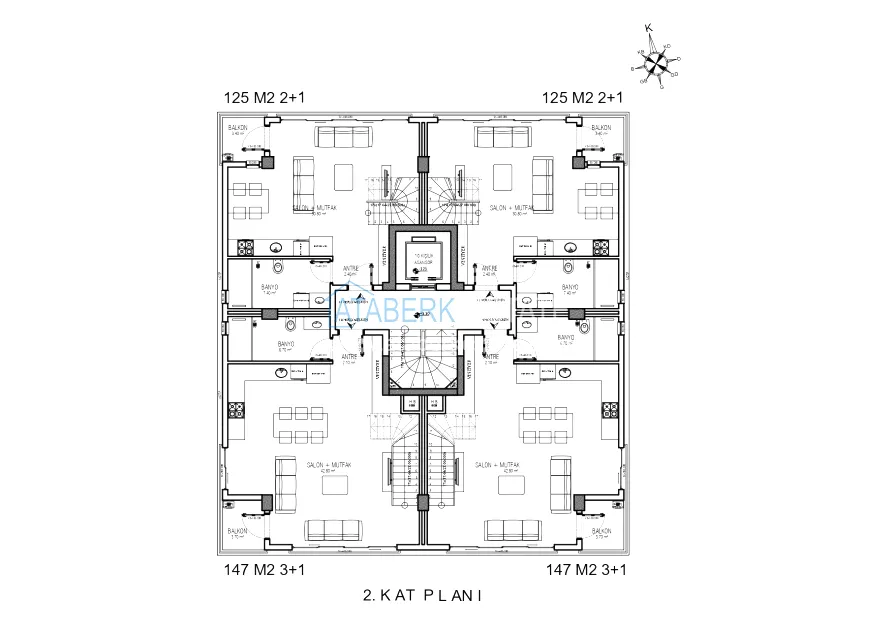 1+1 apartments with an area of 55-60 m2, 2+1 with an area of 76 m2 and 3+1 and 4+1 duplexes with an area of 125 and 147 m2 are for sale. The price of the apartment includes: Smart Home system and floor heating, automatic blinds, Mitsubishi & Daikin air conditioning, Siemens & Franke built-in kitchen appliances, dining table, wardrobe, TV table, headboard, spotlights and LEDs, lacquered interior doors.