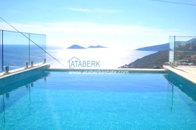 We offer a V.I.P. villa on a hill with panoramic views of the coastal town Kalkan. This villa combines chic, modern and practical design, ideally chosen place, high quality of construction. On the ground floor there is a spacious kitchen-dining room with a living room with access to the swimming pool and a terrace. There is also a utility room and dressing room. The bedrooms are located on the second floor, each bedroom has an access to a balcony and its own bathroom. The large bedroom has a jacuzzi, which is located by the panoramic window with a beautiful view of the bay. On the attic floor there is a large terrace. The villa is sold with all furniture and appliances as in the photo.