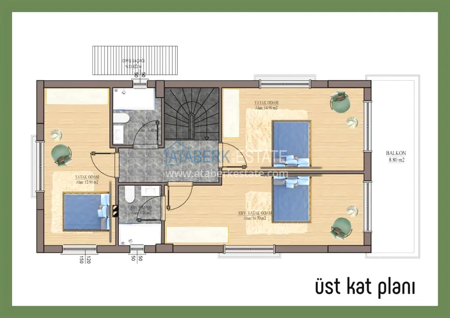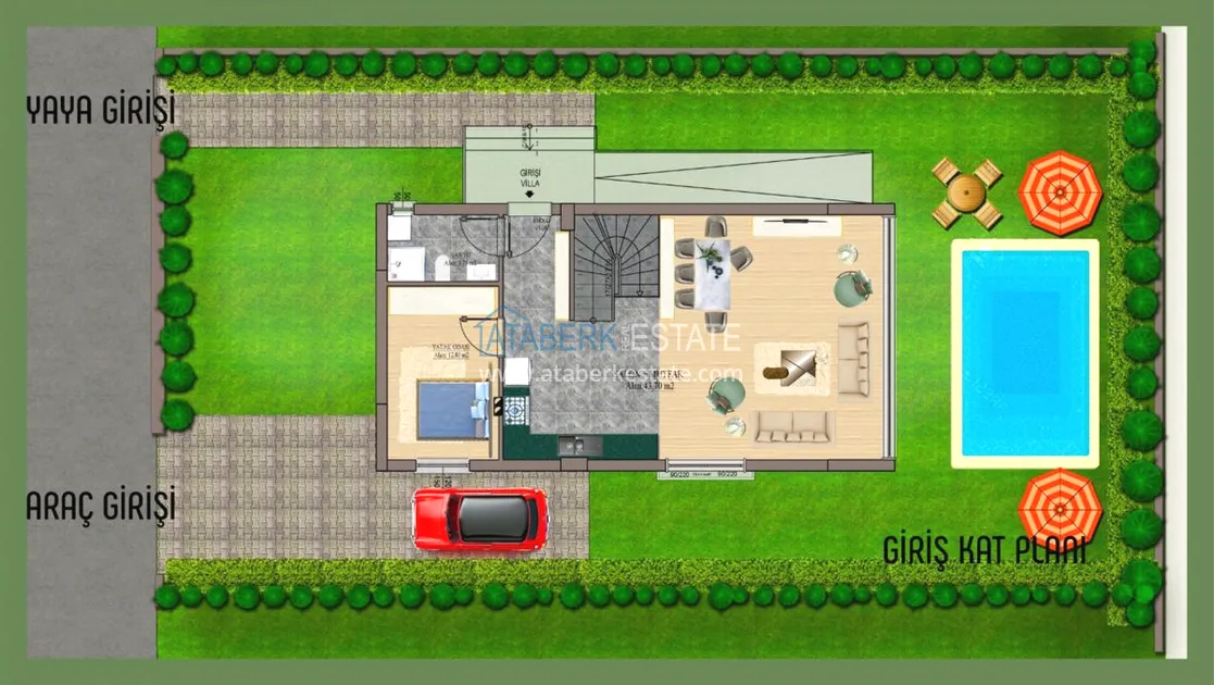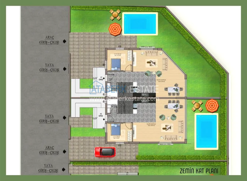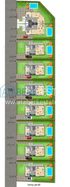 We present you a new exclusive project of a residential complex located in the resort town of Belek. An excellent residential complex that will combine high quality construction and modern elegant design, with a very convenient location. In total, the project has 9 two-storey identical villas, a closed area and its own internal infrastructure. Layout 4+1, gross area 160 m2, with garden 420 m2. Each villa has a private pool, garden and covered garage with automatic system.
