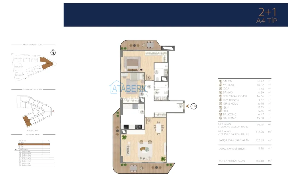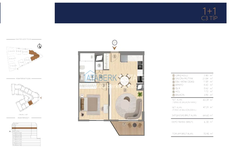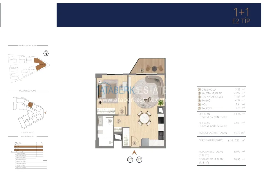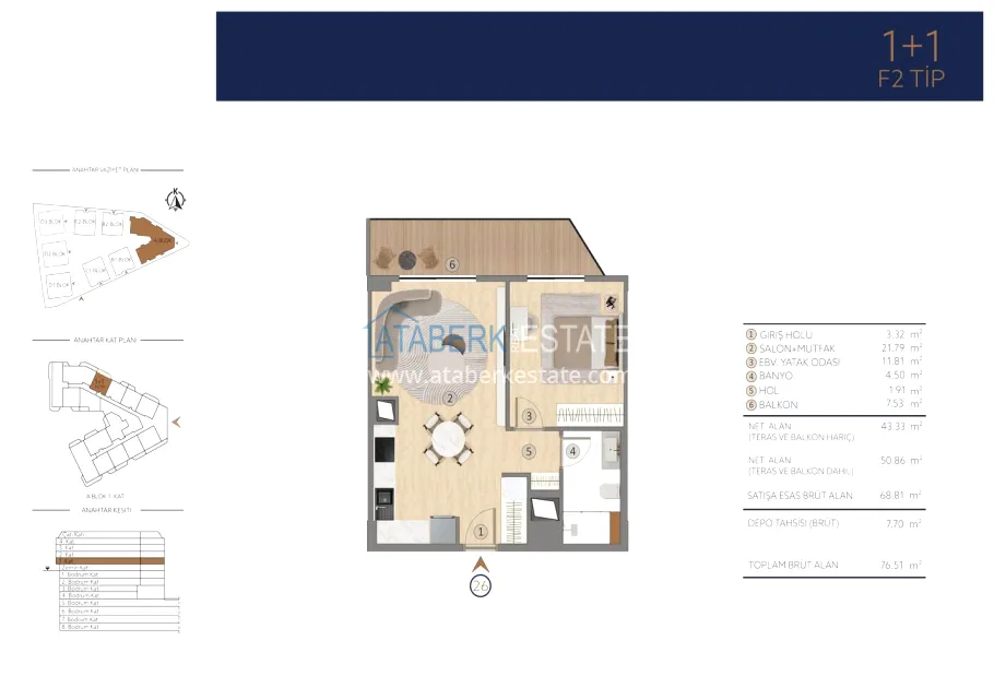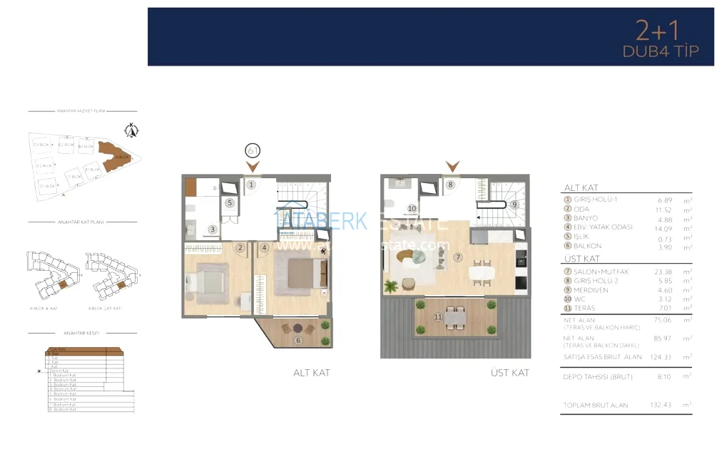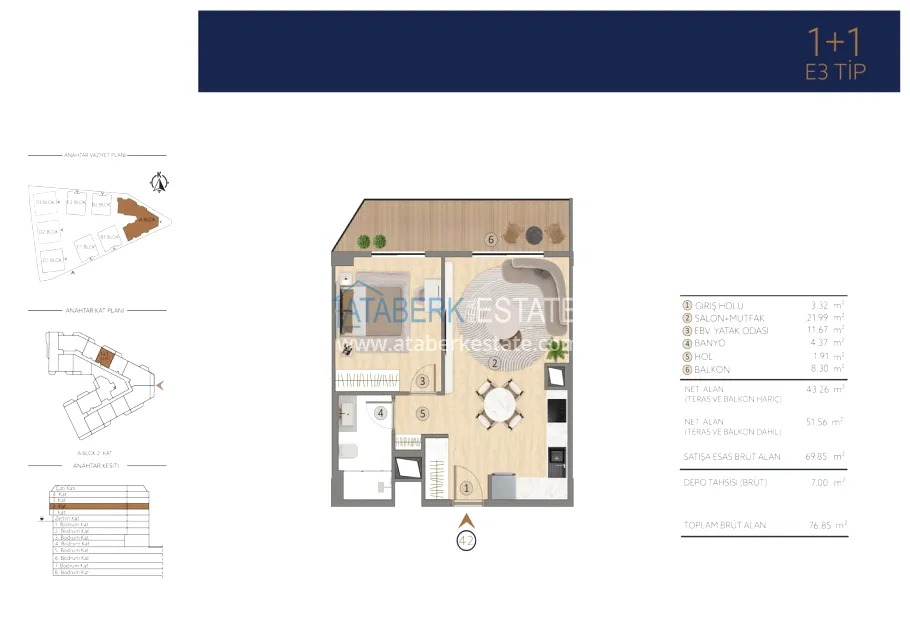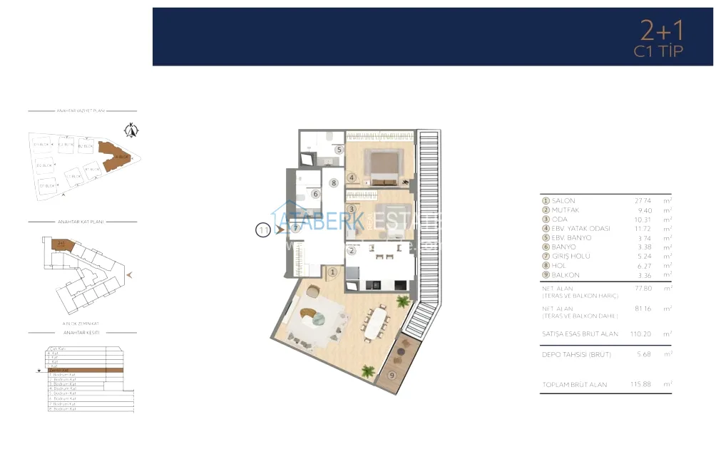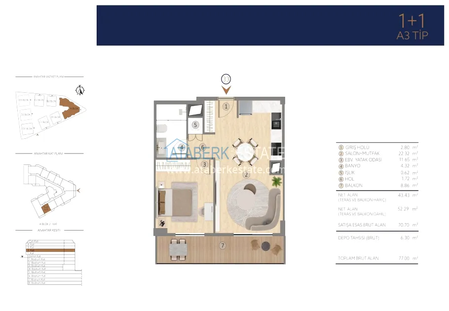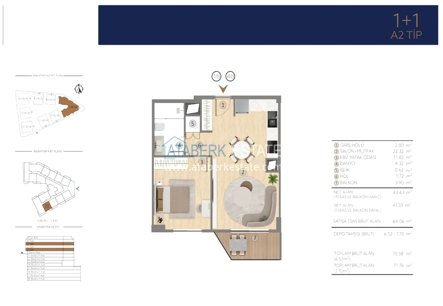 The complex is being built on a 13.500 m² plot and will consist of eight blocks - 205 apartments of various layouts: from cozy 1+1 to spacious 6+1, the area varies from 63.79 to 605.72 m2, as well as 10 commercial premises. Each residence has a clever layout, large windows and spacious terraces or balconies, and storage rooms and covered parking are provided for the convenience of residents.