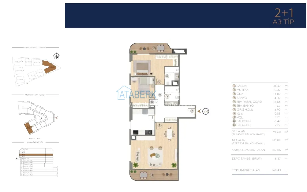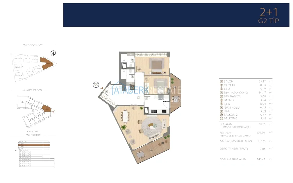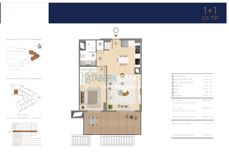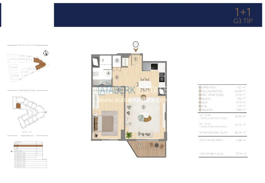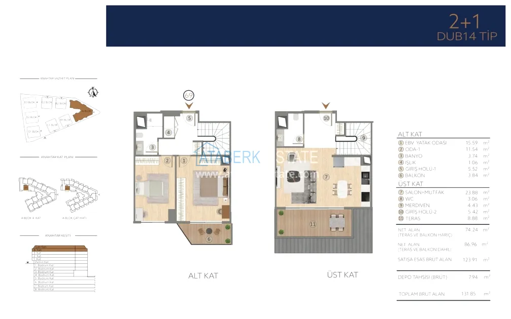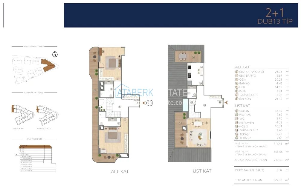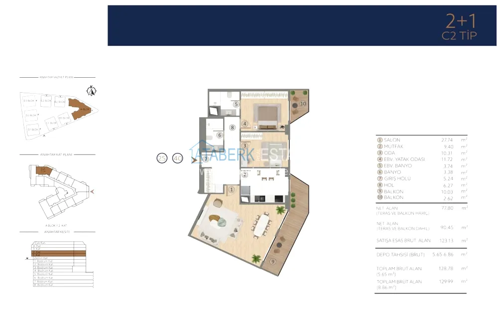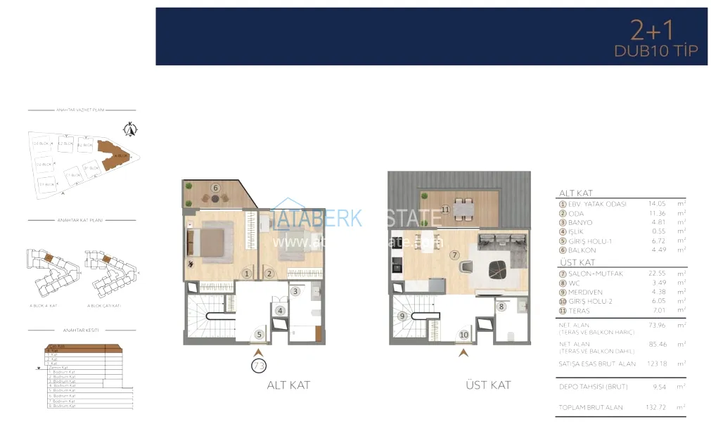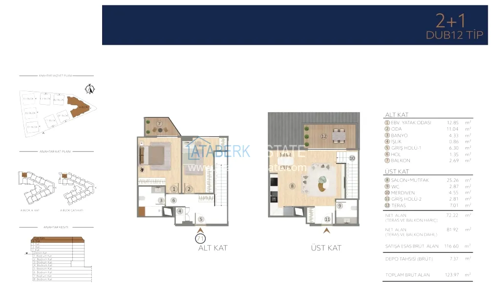The complex is being built on a 13.500 m² plot and will consist of eight blocks - 205 apartments of various layouts: from cozy 1+1 to spacious 6+1, the area varies from 63.79 to 605.72 m2, as well as 10 commercial premises. Each residence has a clever layout, large windows and spacious terraces or balconies, and storage rooms and covered parking are provided for the convenience of residents.