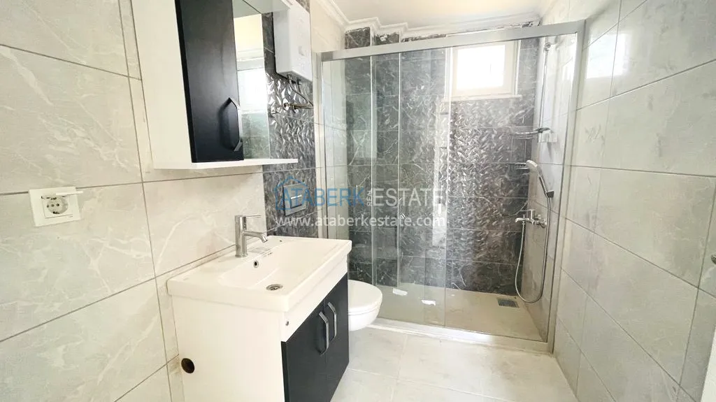 Offered for sale are 2 + 1 apartments with an area of 92 m2 with 2 bedrooms, 2 bathrooms and an American-style kitchen. Specifications: steel front door, interior doors, PVC windows with double glazing, equipped bathrooms, instantaneous water heater, ceramic floor, cabinet kitchen furniture with marble top, outlets for air conditioners, TV and internet.