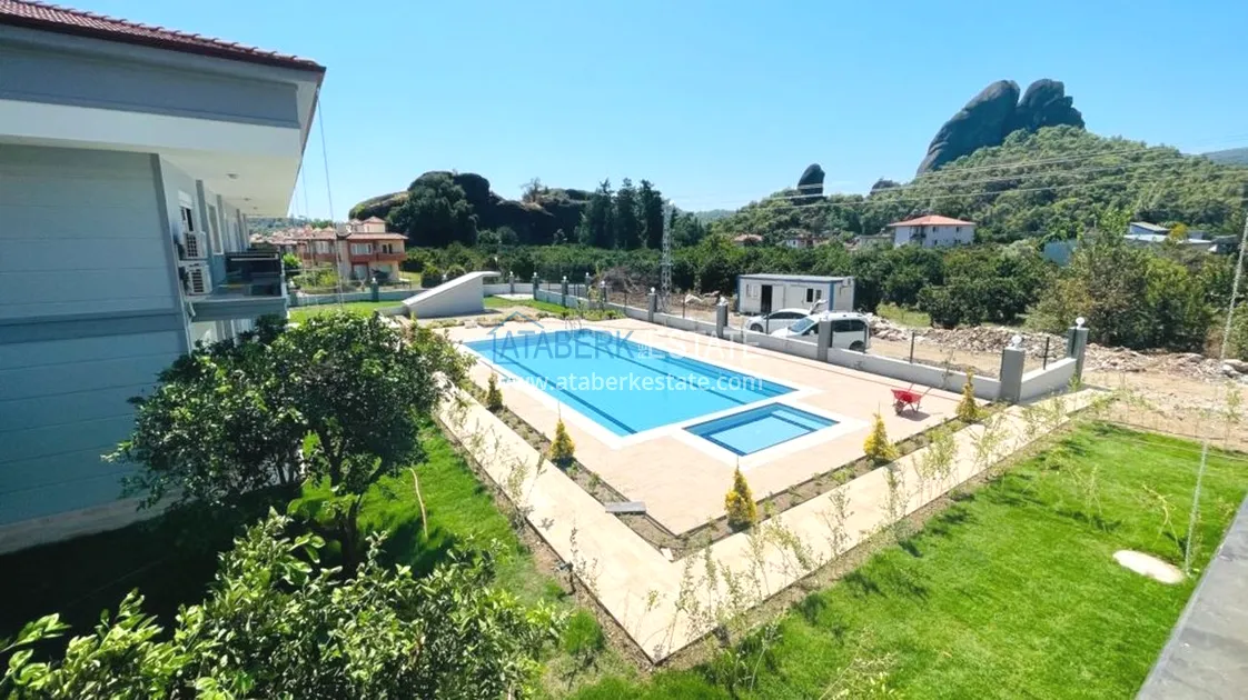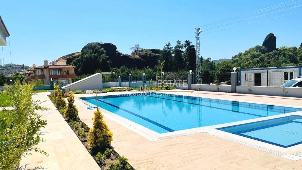The low-rise residence is located in a secluded place with beautiful panoramic views around and clean mountain air - the municipal district of Kuzdere, which is administered by the administration of Kemer. The complex is located at a distance of 5 km from both the Mediterranean coast and the city center. There are chain supermarkets 400 meters away, Tahtali ski center 17 km, golf courses 67 km. The famous canyon is one and a half kilometers away.