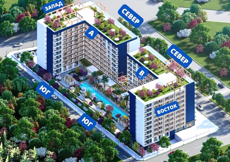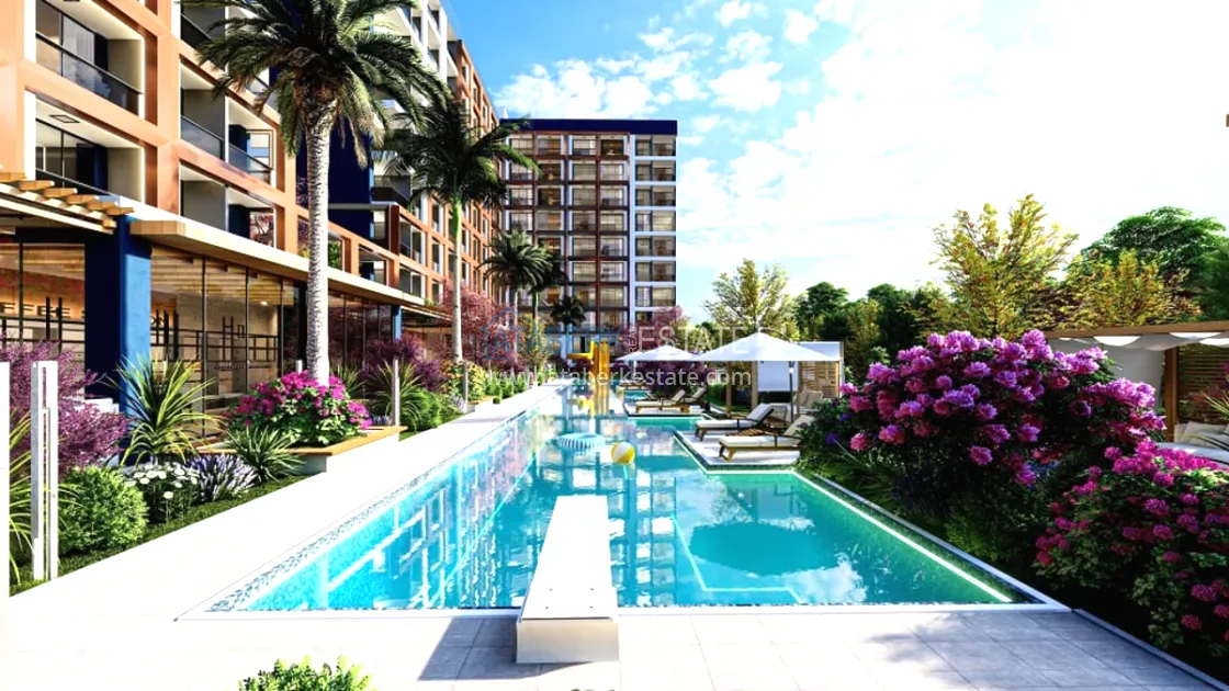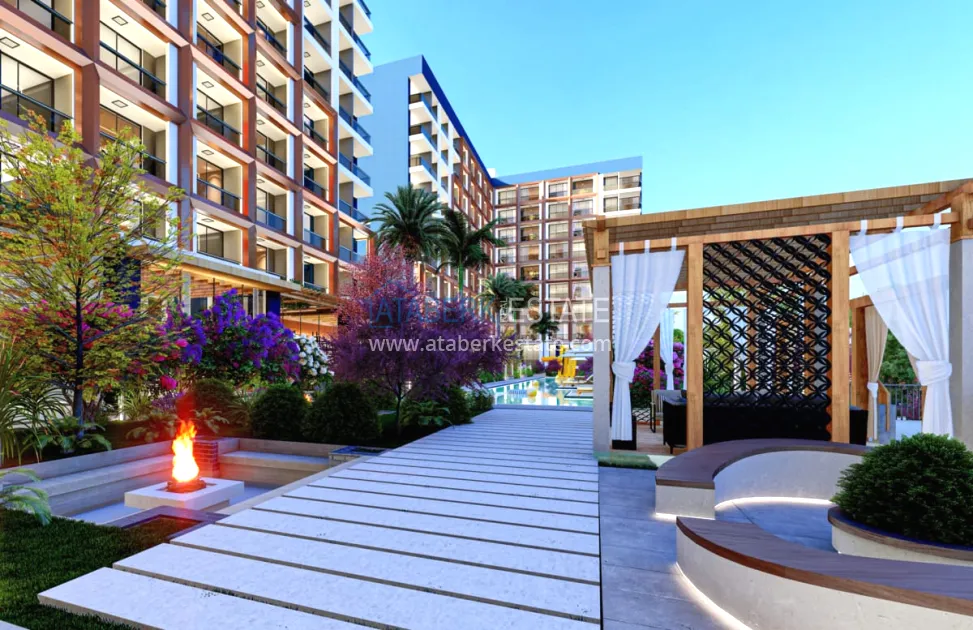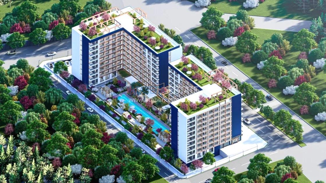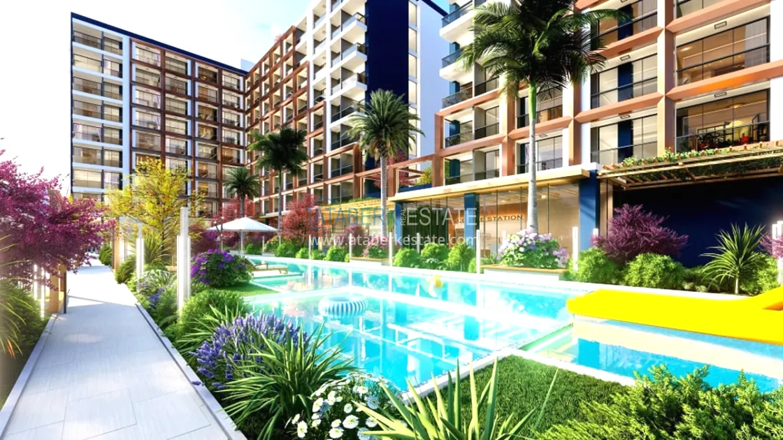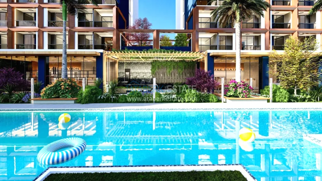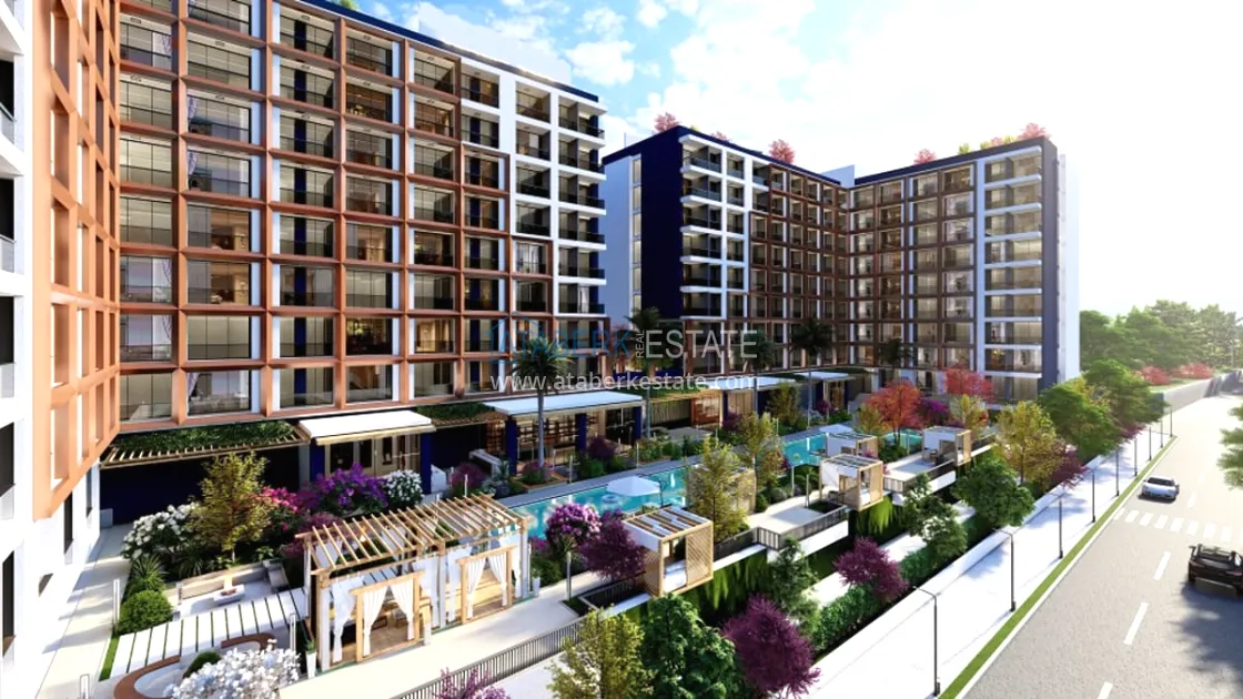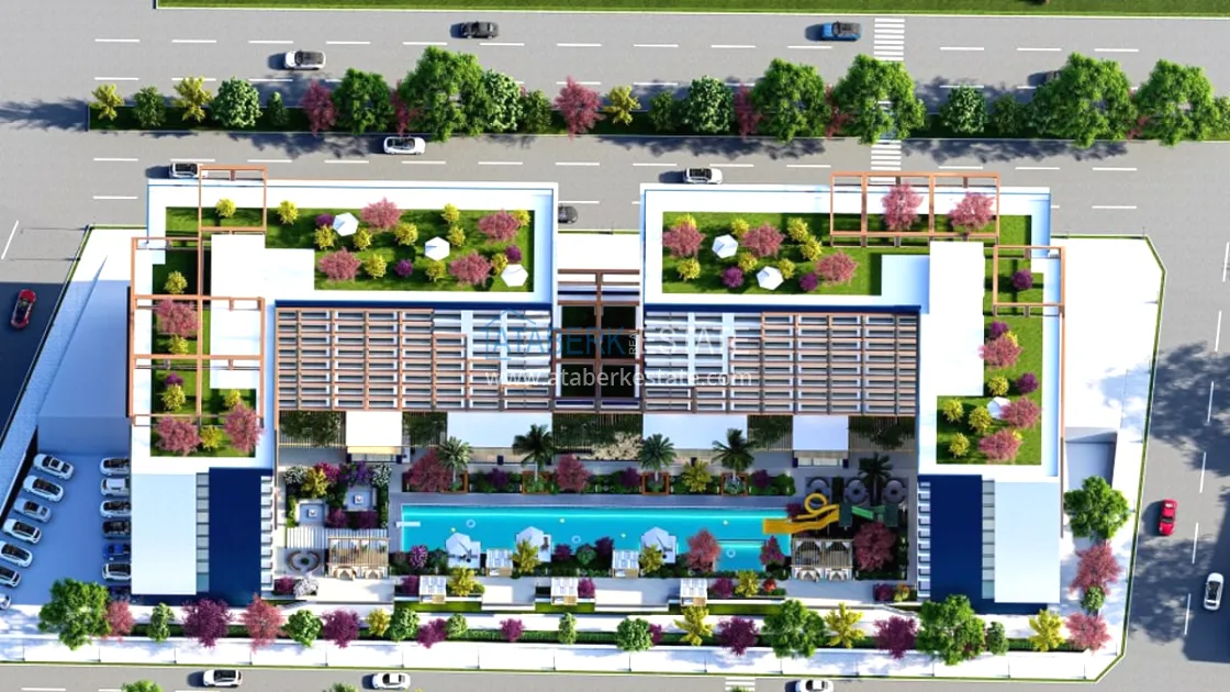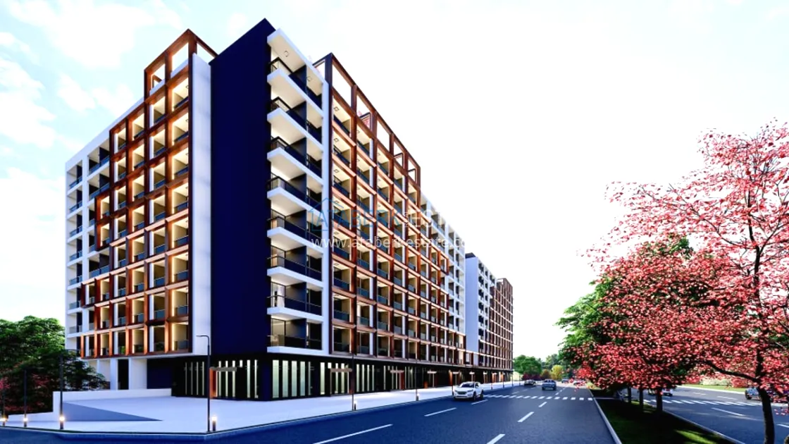 The residential complex will be built on an area of 6465 m2. Consists of two blocks of 8 floors, total 512 apartments. On the floor there are 26 apartments 1+0 with an area of 39m2 and 5 apartments 1+1 with an area of 54m2, Specifications: walls are painted with waterproof paint, steel door, electric stove, bed, wardrobe, work desk, equipped place for TV, false ceiling, complete bathrooms , entrance, bathroom and kitchen cabinets, kitchen worktop, 10mm parquet, PVC windows. Infrastructure features: electric car charging station, shuttle to the beach, A’La Carte Restaurant, Room Service, dry cleaning, lobby - reception, hairdresser, market, billiards, Playstation, cinema and much more for a comfortable life and recreation.