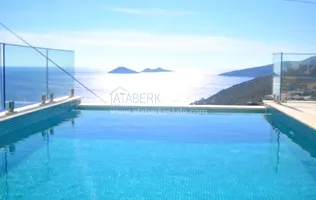 We offer a V.I.P. villa on a hill with panoramic views of the coastal town Kalkan. This villa combines chic, modern and practical de