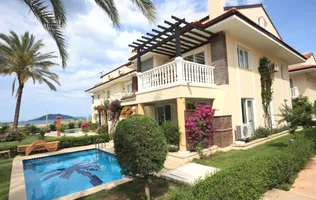 There is a three-bedroom villa with 4 bedrooms with stunning views of the sea and Alanya Castle.