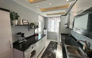 In a residential Turkish building for sale is a linear four-room turnkey flat with separate kitchen and glazed balcony in the centre of the lively