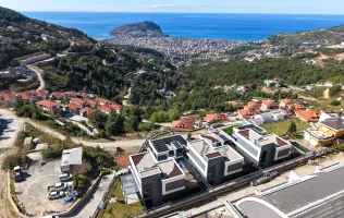 A new elegant complex of modern villas with luxurious views in a prestigious European district of Alanya.